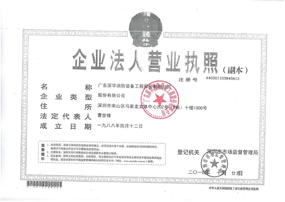 广东深华消防设备工程股份有限公司,成立于1988年,于2015年9月在新三板成功挂牌上市(股票代码833547)。是一家以消防工程、机电工程、智能化工程、空调安装工程等工程施工为主业的,集消防设计、消防维保、消防培训、消防咨询、消防信息化管理、建筑智能化维保服务为一体的综合服务商,是行业内专业化程度最高、资质种类最全的消防工程企业之一。企业情况,请登录//www.gdsh119.com
