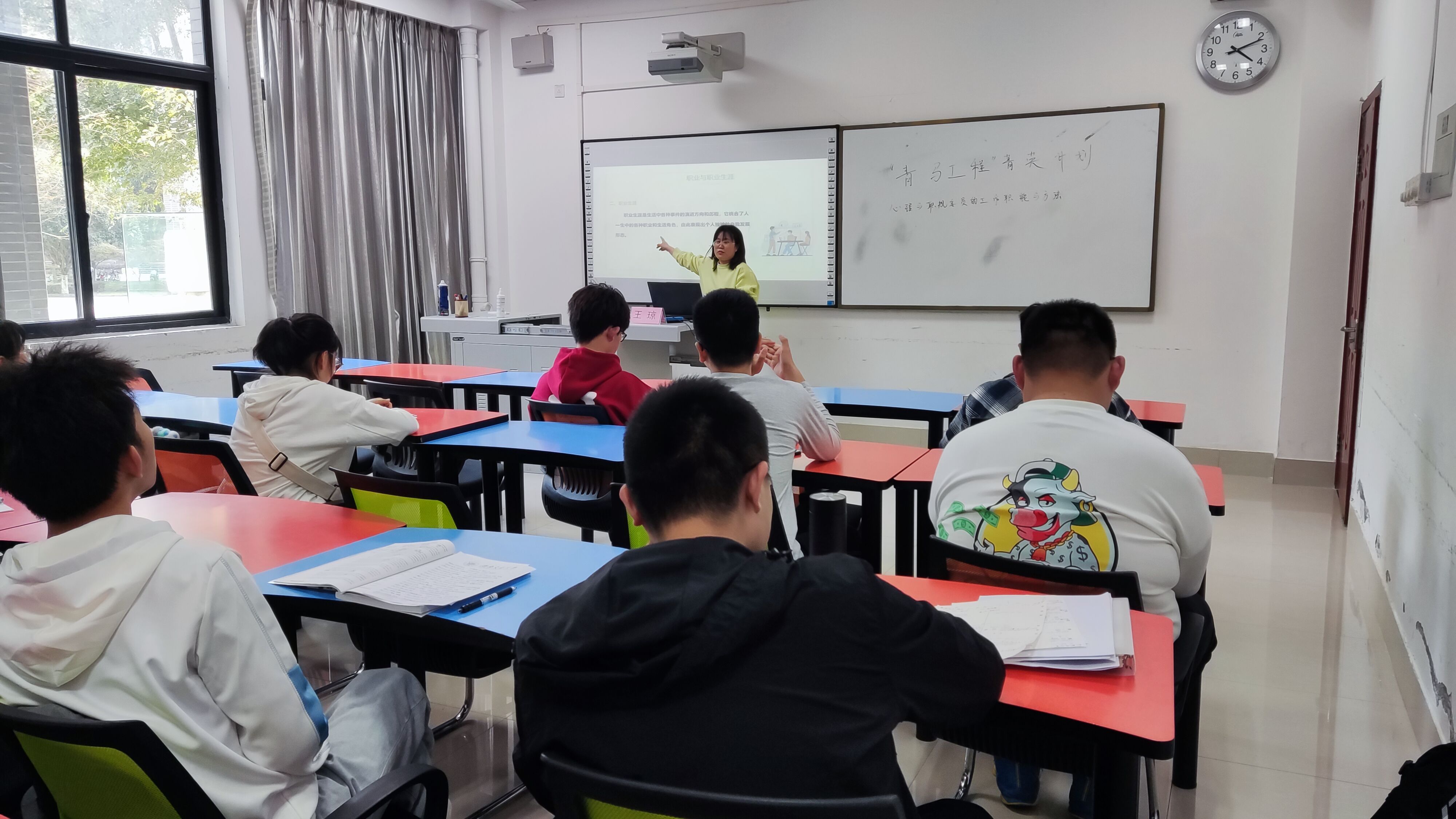 “青马工程”菁英计划——职业生涯规划讲座。本次讲座由王琼老师主讲,采用线上线下同时进行的方式,大一新生心理与职规委员线下参加,其他年级线上参加。