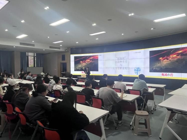 4月11日晚7时,根据同学们对于小语种的学习需求,开展了“小语种学习与大学生职业规划活动”,讲座由“洋光外语”小语种讲师李碧云老师主讲,李碧云老师为大家讲述了在申请海外留学时小语种考试的具体优势,并分享了各种小语种的语言特点及学习技巧,为有海外留学意向的同学指引了新的方向。