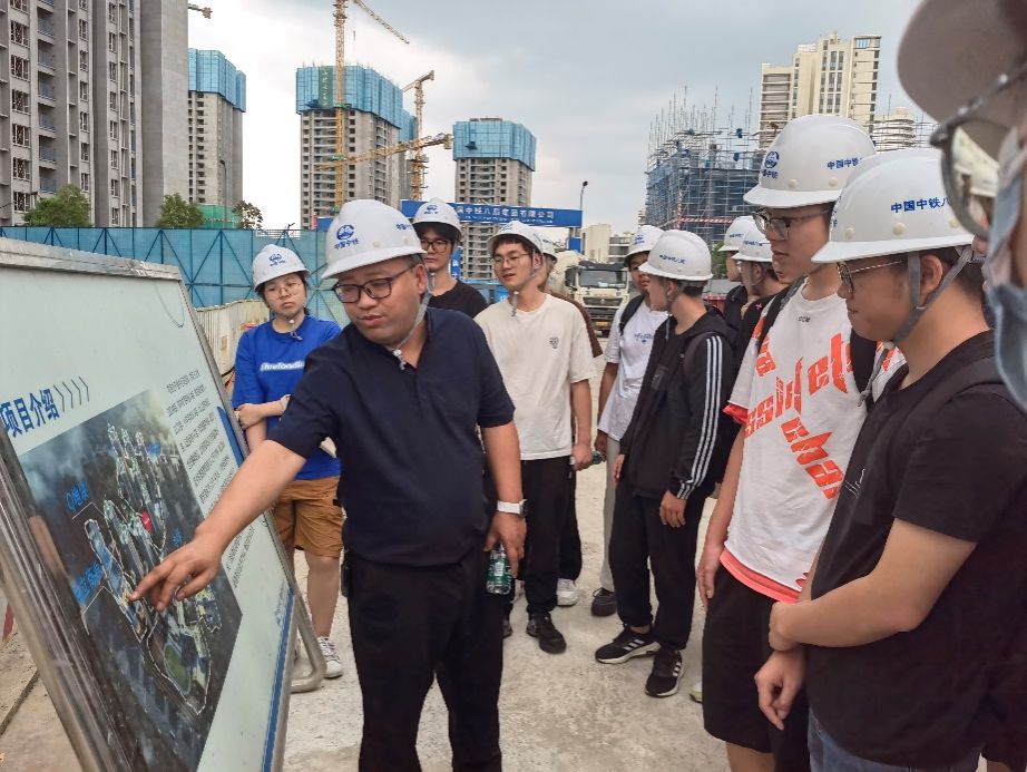 辅导员梁爽带队陪同,中铁八局建筑公司人力资源部副部长凡强、中铁八局大北项目部项目书记钟时亮、项目经理陈兆伟、工程部部长王森及相关工作人员接待参观。