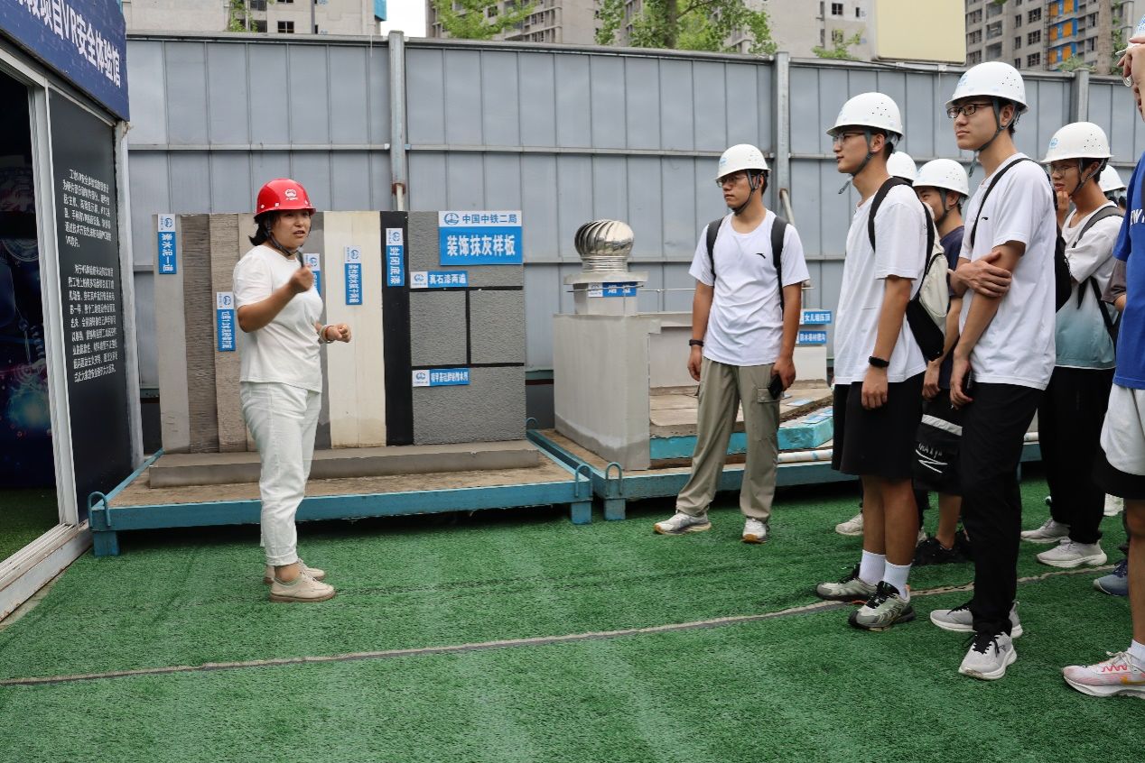 2019届校友、项目部技术人员何老师带领师生参观施工现场。