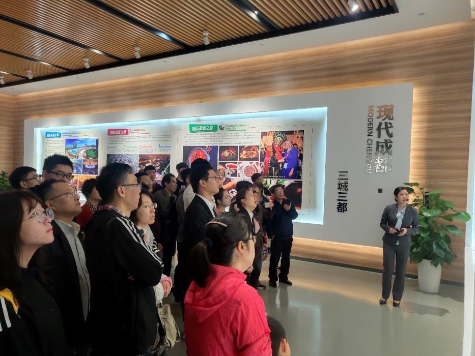 成都市第十三次党代会鲜明提出“建设全面体现新发展理念的国家中心城市”目标,在全国率先把新发展理念镌刻在城市的旗帜上,探索形成了“系统学习新思想、分类研究新思想、对表贯彻新思想”的工作范式,推动全市形成尊崇新思想、对表新思想、践行新思想的广泛共识和高度自觉。一楼映入眼帘的中国文化遗产标志“太阳神鸟图”代表着这个城市的文化,而“国家中心城市”,“世界文化名城”,“美丽宜居城市”,“国际门户枢纽城市”则是成都建设的定位和目标。同学们都学习到了城市发展定位的重要性。
