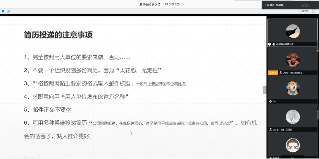 2018级辅导员、就业指导中心指导老师杨都强老师作为主讲老师主持参与了“生涯番茄”系列线上沙龙活动第九期,与简历制作和面试方面有疑惑的同学一起谈心谈话。本次活动通过线上平台“腾讯会议”进行,活动主题为“简历与面试”。