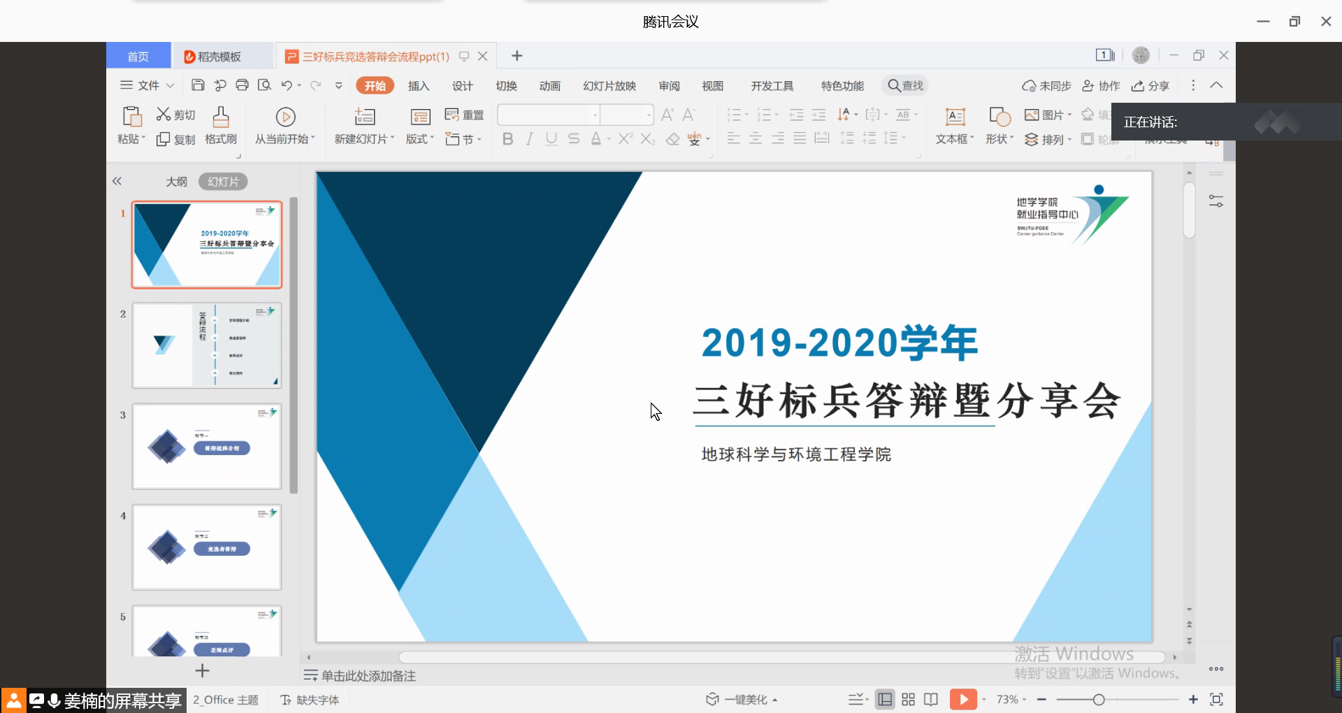 2020年10月9日13时,地球科学与环境工程学院就业指导中心成功举办“2018级环境、安全工程专业2019-2020学年三好标兵答辩暨分享会”。本次活动由环境工程专业的姜楠同学主持,每日大赛
