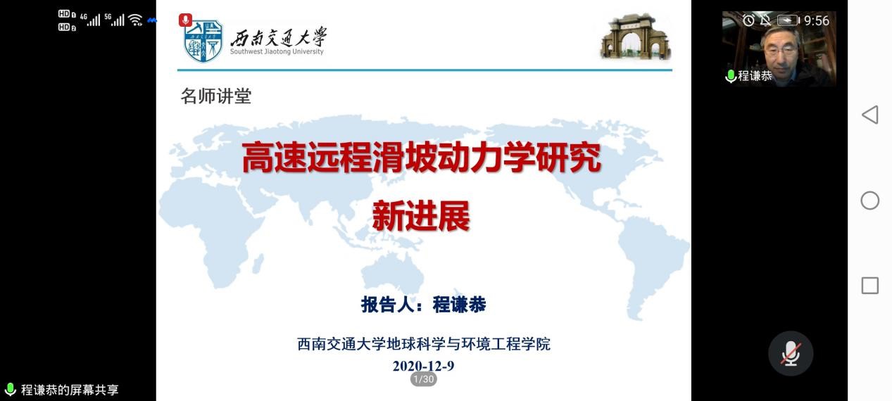 2020年12月9日周三上午9:50-11:30,地球科学与环境工程学院就业指导中心通过腾讯会议举办第四期“名师讲堂”讲座,旨在深化学生对专业了解,提高学生学习科研能力,强化师生经验交流,搭建国内外学习经验交流桥粱,营造国际学习氛围,进一步提高我校就业指导工作实效。本次讲座由程谦恭教授主讲,主题是高速远程滑坡动力学新进展,讲座吸引到每日大赛