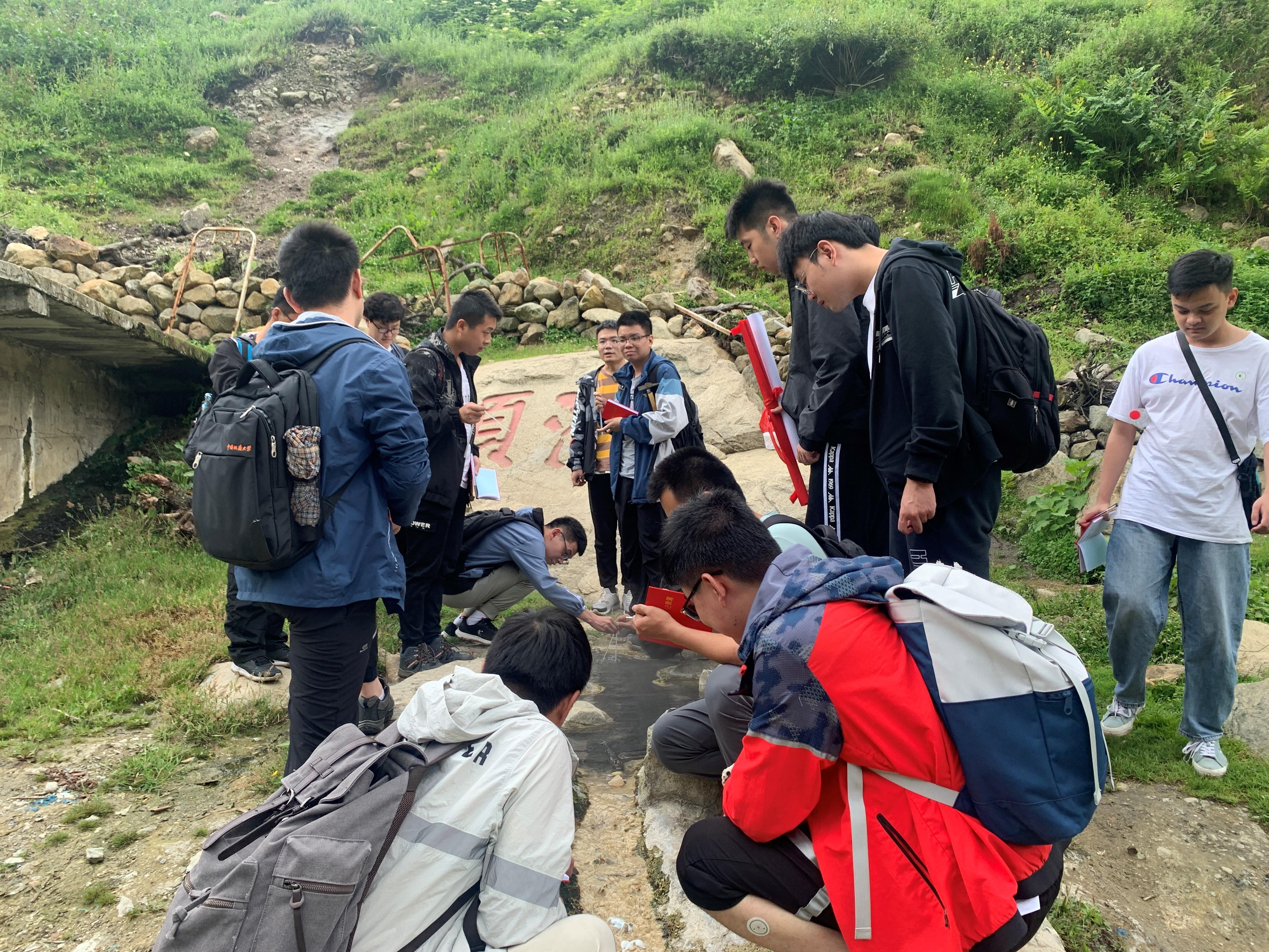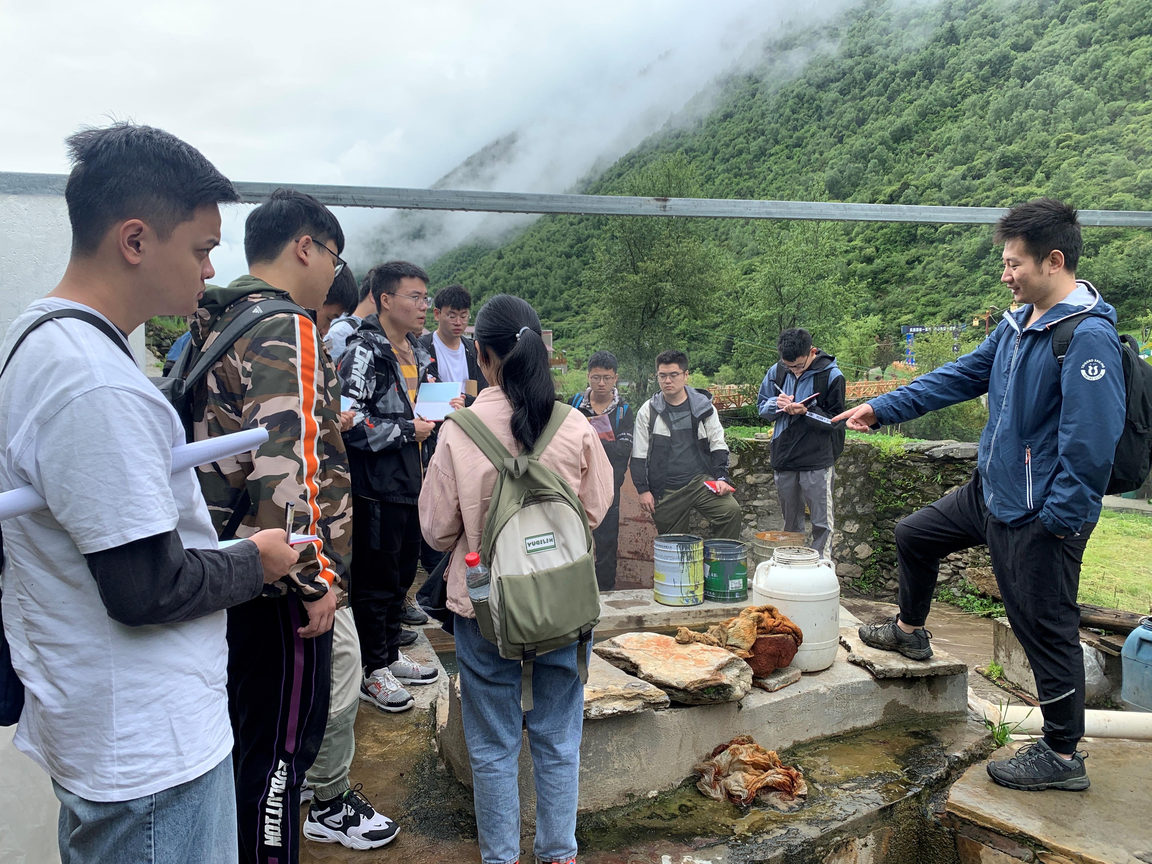 最后,张云辉和石宇老师带领资源勘查工程专业18名学生在康定进行了外业实习。针对康定榆林宫、二道桥、中谷等地的温泉和冷泉的地质成因、地质构造等内容开展了调研,并参观了榆林宫地热供暖项目的室内配套设施与工艺流程。实习过程中,途经康定市烈士陵园,带队老师不忘进行课程思政,为学生宣讲了红军长征的艰难险阻,鼓励大家要弘扬革命烈士吃苦耐劳的精神,学好专业知识,为我国矿产资源行业发展贡献力量。至此,资源勘查工程专业在康定的第一次外业实习顺利完成。