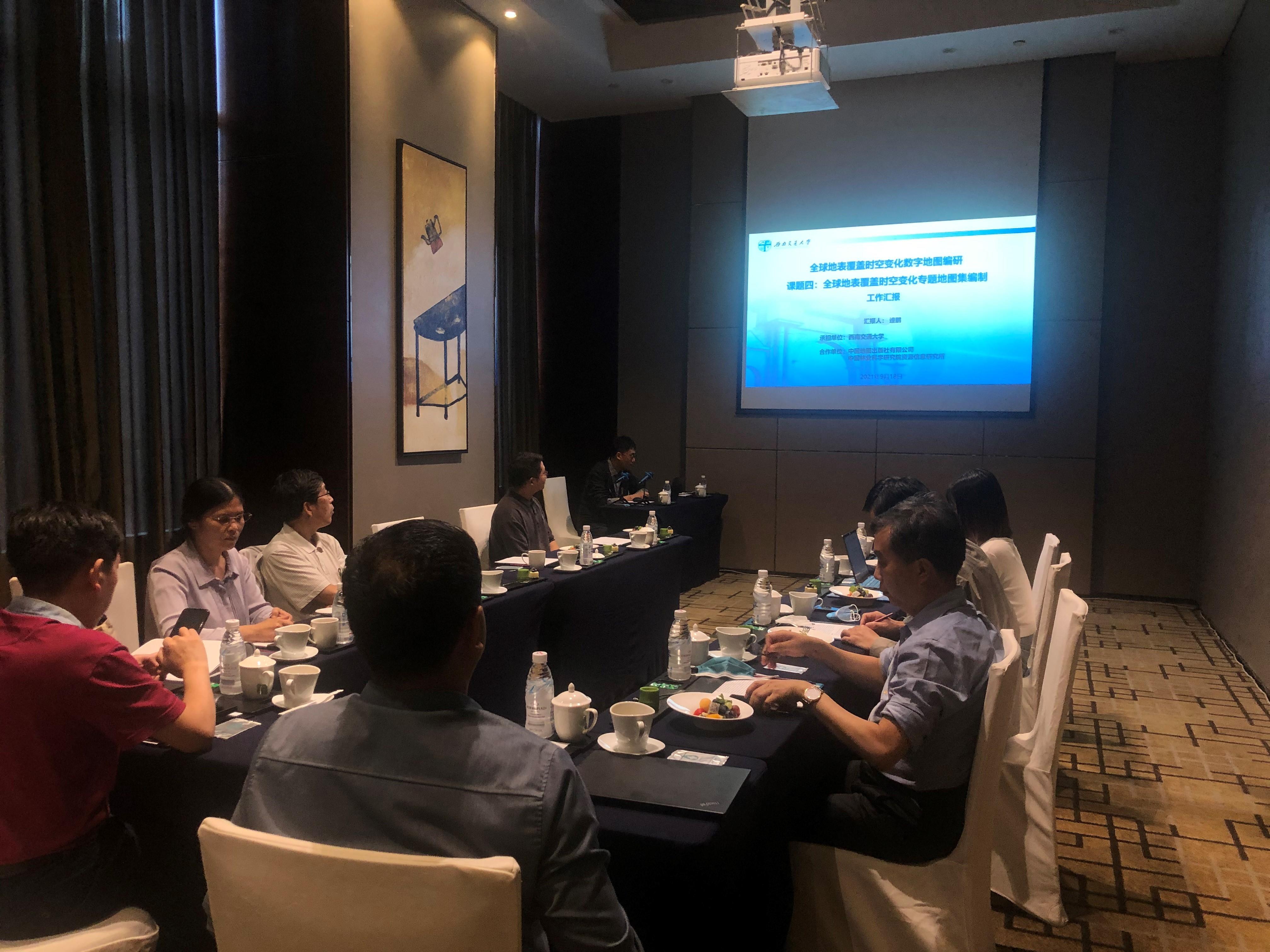 首先,项目负责人朱秀丽正高介绍了项目背景和四个课题的任务和分工。随后课题四负责人遆鹏从课题技术方案、地图集内容结构、数字版和纸质版地图集编制等方面汇报了全球地表覆盖时空变化专题地图集编制的工作情况。咨询专家分别从地图集主题、地图集用户、地图集表达方法、制图方法、地图集版式设计和交互设计等方面给出建议,并与项目组成员进行了深入交流,规划了继续丰富地图集内容以及提升用户交互体验等下一步工作,制定了努力实现全球地表覆盖时空变化精品地图集编制的目标。