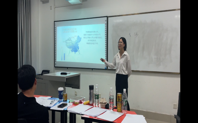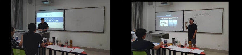 廖昕老师主讲《地震及其分类》,他按照教学设计思路,从课前回顾、正题引入到课后思考三部分,较完整的将讲课内容予以展示。评委老师们分别从课程内容逻辑性、PPT美观性、课程基础知识与学术的结合性等方面进行了点评。