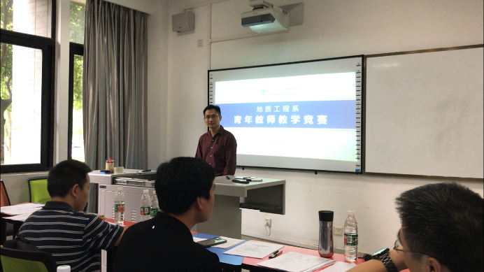 为了弘扬优良师德师风,提升青年教师的教学能力和业务水平,地质工程系青年教师教学竞赛于2021年9月26日上午8:00至晚上9:00,在犀浦校区X4131教室进行。本次参赛对象为年龄在40周岁以下并且开设本、研课程的青年教师,竞赛内容包含教学设计、课堂教学和教学反思3个环节。通过充分宣传和动员,我系符合参赛条件的青年教师全部参赛,共有24位。本次比赛邀请我系教学专家:程谦恭教授、赵晓彦教授、郭永春副教授、赵文副教授、覃礼貌老师担任评委,比赛由张志厚老师担任主持人。