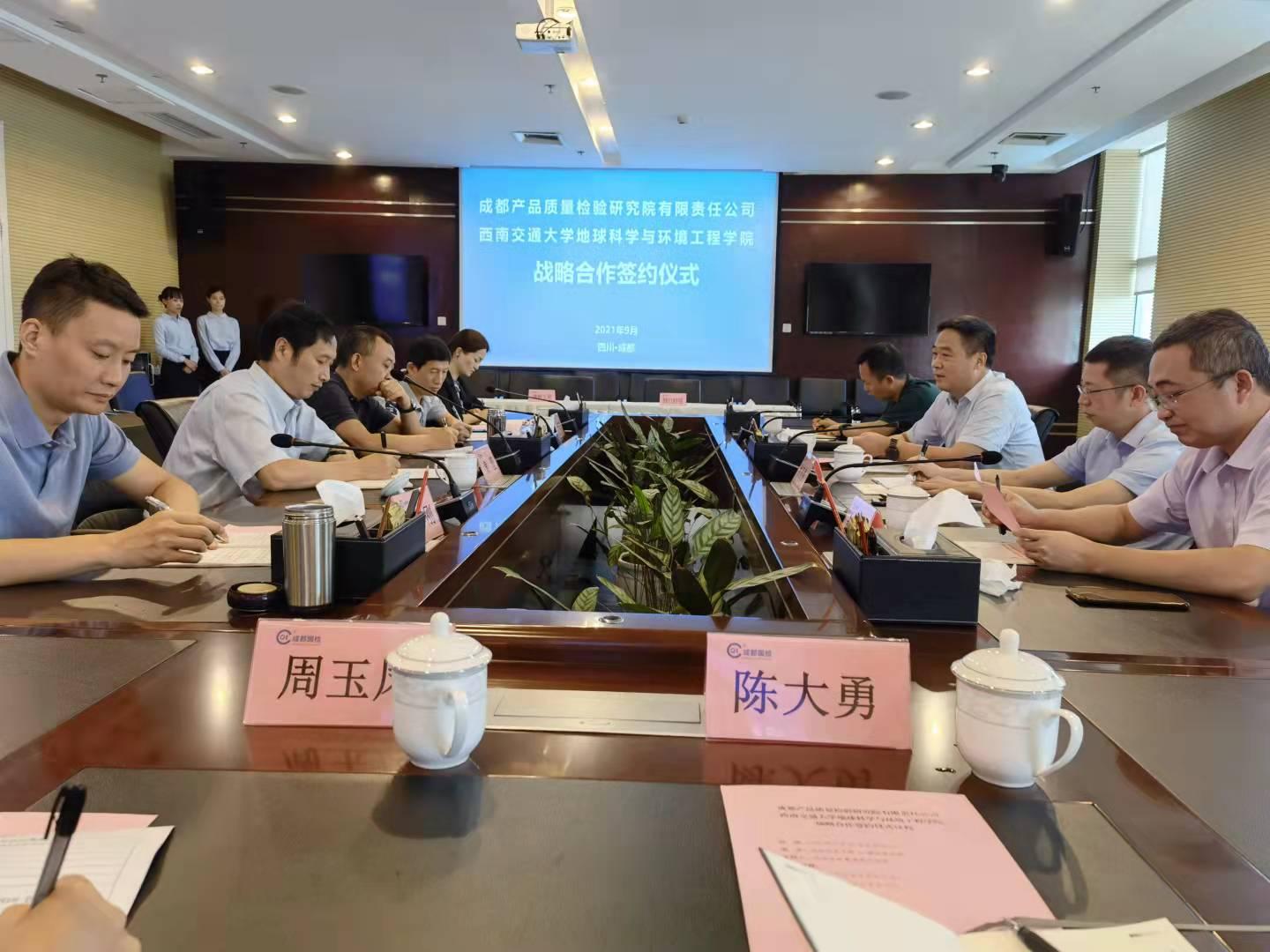 地球科学与环境工程学院关秦川书记带队一行4人赴成都产品质量检验研究院有限责任公司签订战略合作协议。