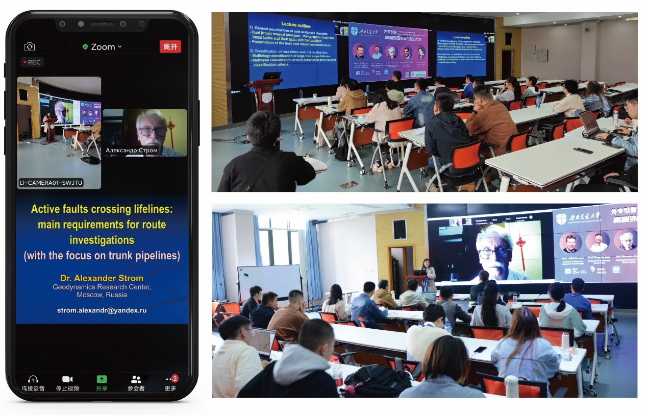 26日下午,俄罗斯国家地球动力学研究中心首席专家Alexander Strom教授受邀做两场学术报告。报告题目分别为《Rock avalanches: Basic characteristics and classification criteria》与《Active faults crossing lifelines: Main requirements for route investigation》。