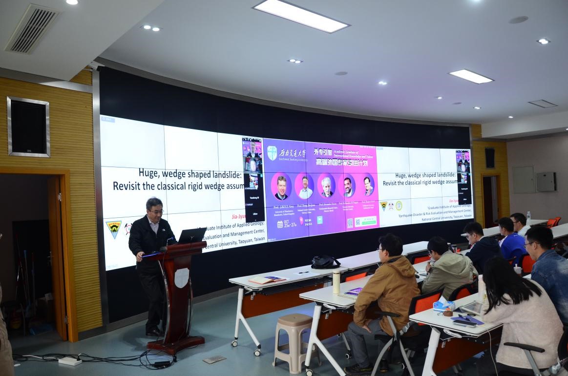 10月26日上午,台湾中央大学地球科学学院副院长、特聘教授董家鈞(Jia-Jyun Dong)受邀发表题为《Huge, wedge shaped landslides: Revisit the classical rigid wedge assumption》与《Orientation uncertainty of weak planes and rock slope failure probability》的两场学术报告。