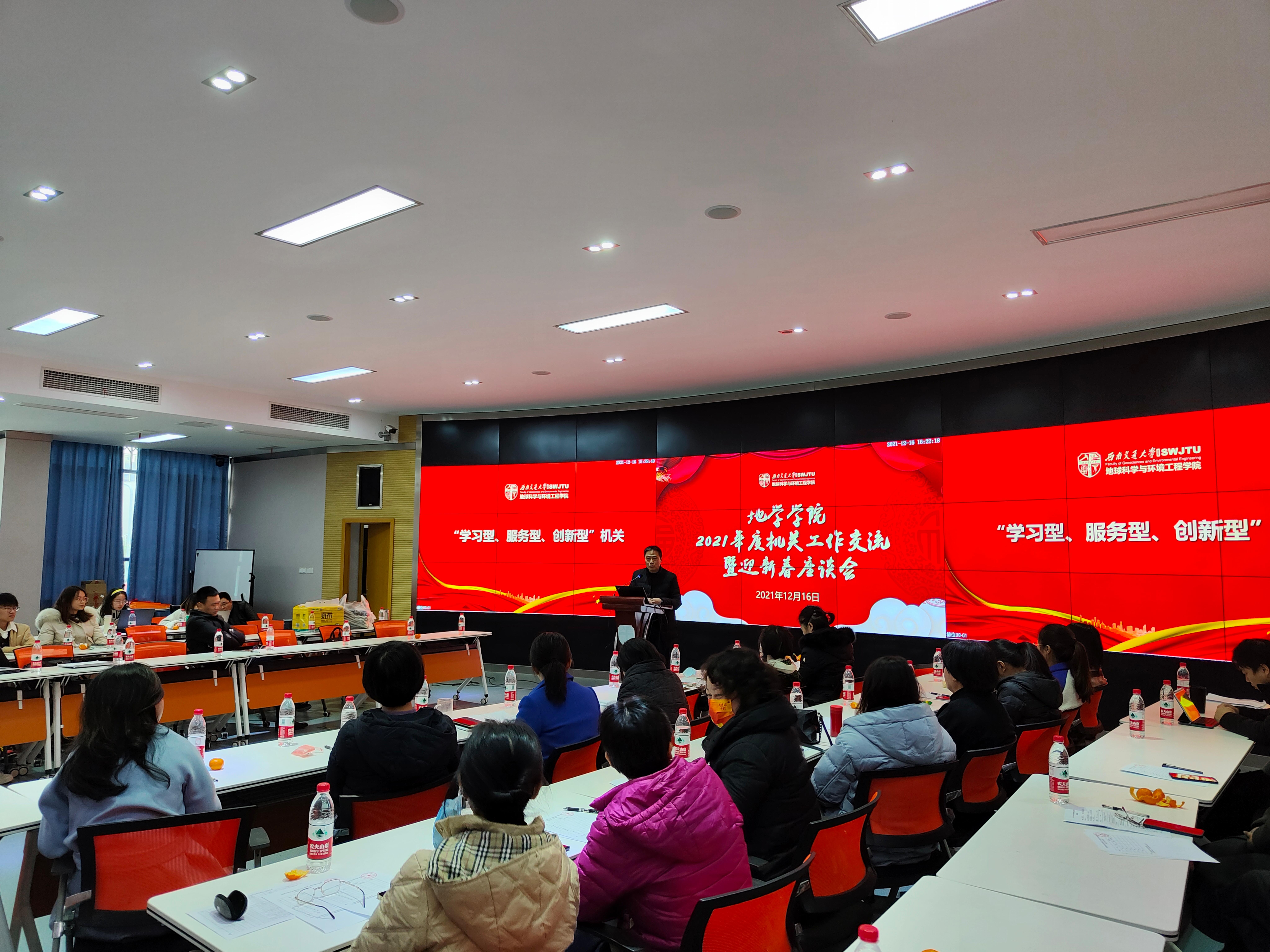 关秦川肯定了这一年来学院党政机关的工作,指出机关的工作即是学院形象的窗口、党政的枢纽,并代表学院党委对机关全体老师一年来的辛勤工作表示感谢,鼓励大家再接再厉,力争每日大赛