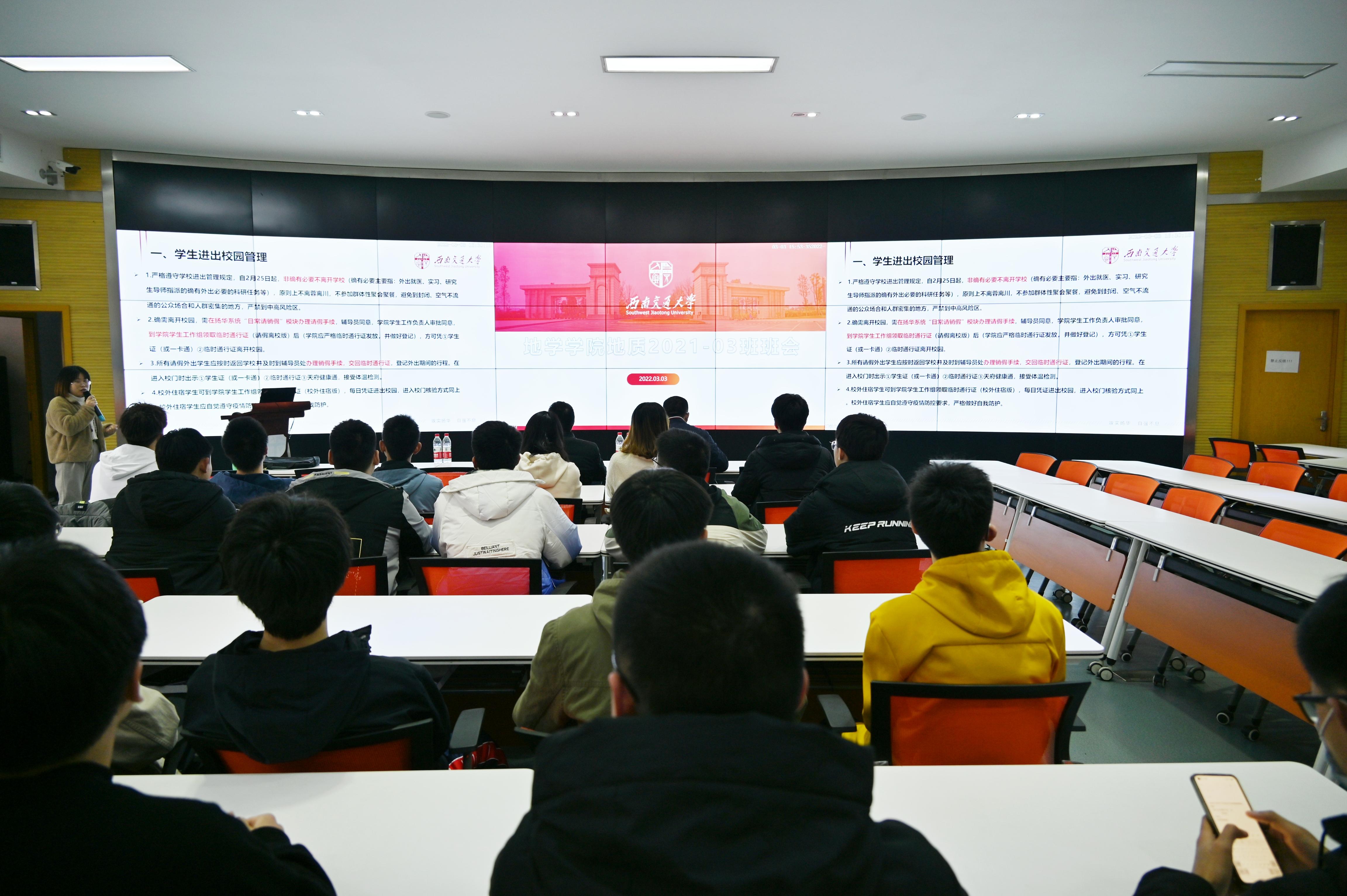 会议伊始,王琼以班级建设为中心,向同学们提出四点要求。一是强调要做好疫情防控工作,严格遵守学校防疫规定;二是对班级上学期成绩进行分析总结,并从课堂、生涯规划等方面给出学习建议;三是对综合素质评定标准进行介绍,提醒同学们要注重德智体美劳全面发展;四是强调安全问题,叮嘱同学们提升安全意识,做好安全防范。最后,王琼鼓励同学们要积极做好班级建设工作,并表达自己的美好祝愿。