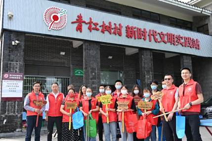 团委书记杨都强与青杠树村团支部书记姚少双共同签订“志愿四川·爱在社区”协议书,为“青杠树村大学生乡村振兴社会实践基地”授牌,并合影留念。
