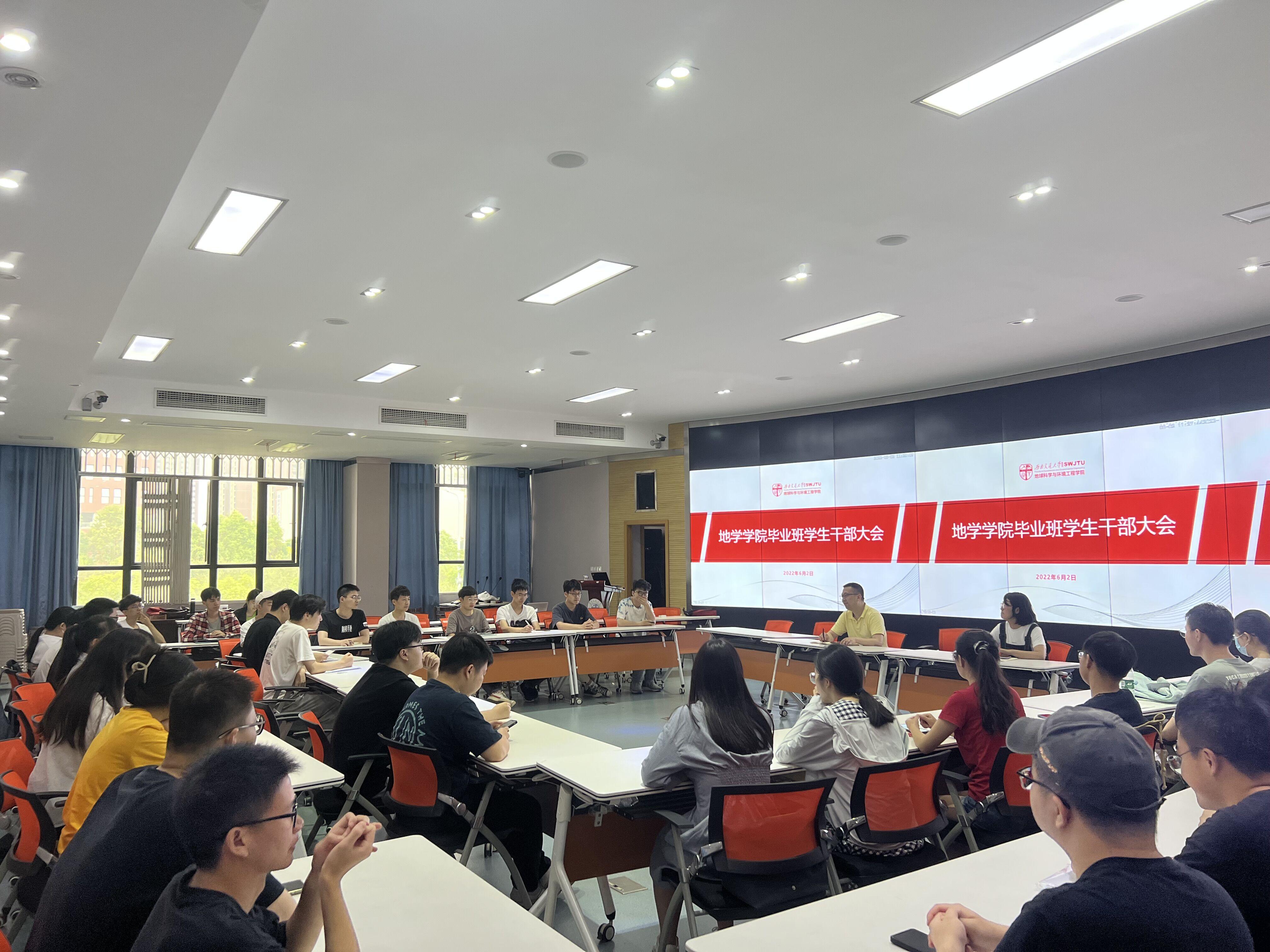 于X4243召开毕业班全体学生干部大会,就毕业季活动安排、疫情防控、文明离校等方面进行了强调,学院党委副书记、纪委书记傅尤刚主讲,毕业班辅导员孙惠敏、王姝歆及学生党员干部、班长、团支书参加了此次会议。