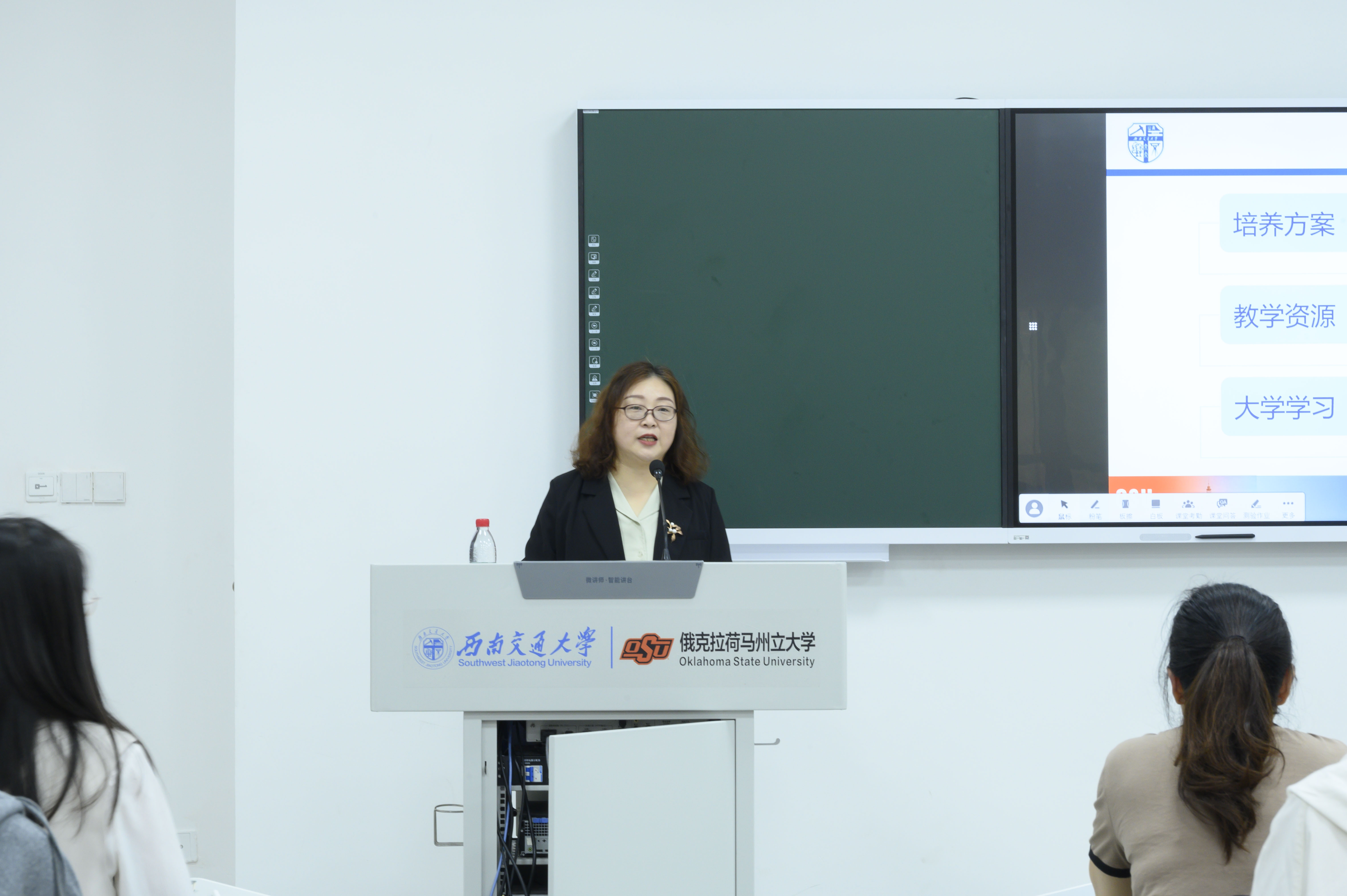 党委副书记、副院长许军华,党委副书记、纪委书记傅尤刚,副院长张玉春,学院办公室主任兼项目部行政主管关方,环境工程专业OSU项目教学主管、学业导师刘洋,综合事务员陈茜,教务员老师牛小会,学业导师代表张胜利、陈钰、曾卓,工程基础化学课程任课老师Hassan,以及2022级安全工程(中外合办)与环境工程(中外合办)专业全体学生。本次教学班会分别由辅导员翟琦老师、孙惠敏老师主持。