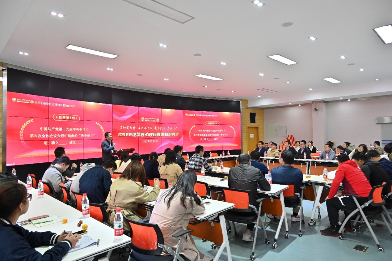 活动最后,由学校和学院青工委员彭道平副教授主持“贯彻党代会·喜迎二十大·爱上交大·赢在地学——GSEE地学匠心项目”有奖知识竞答活动。他围绕党的重要理论和党史、学校第十五次党代会精神、校史院史等一系列问题进行提问,到场青年教师积极踊跃抢答,氛围热烈。