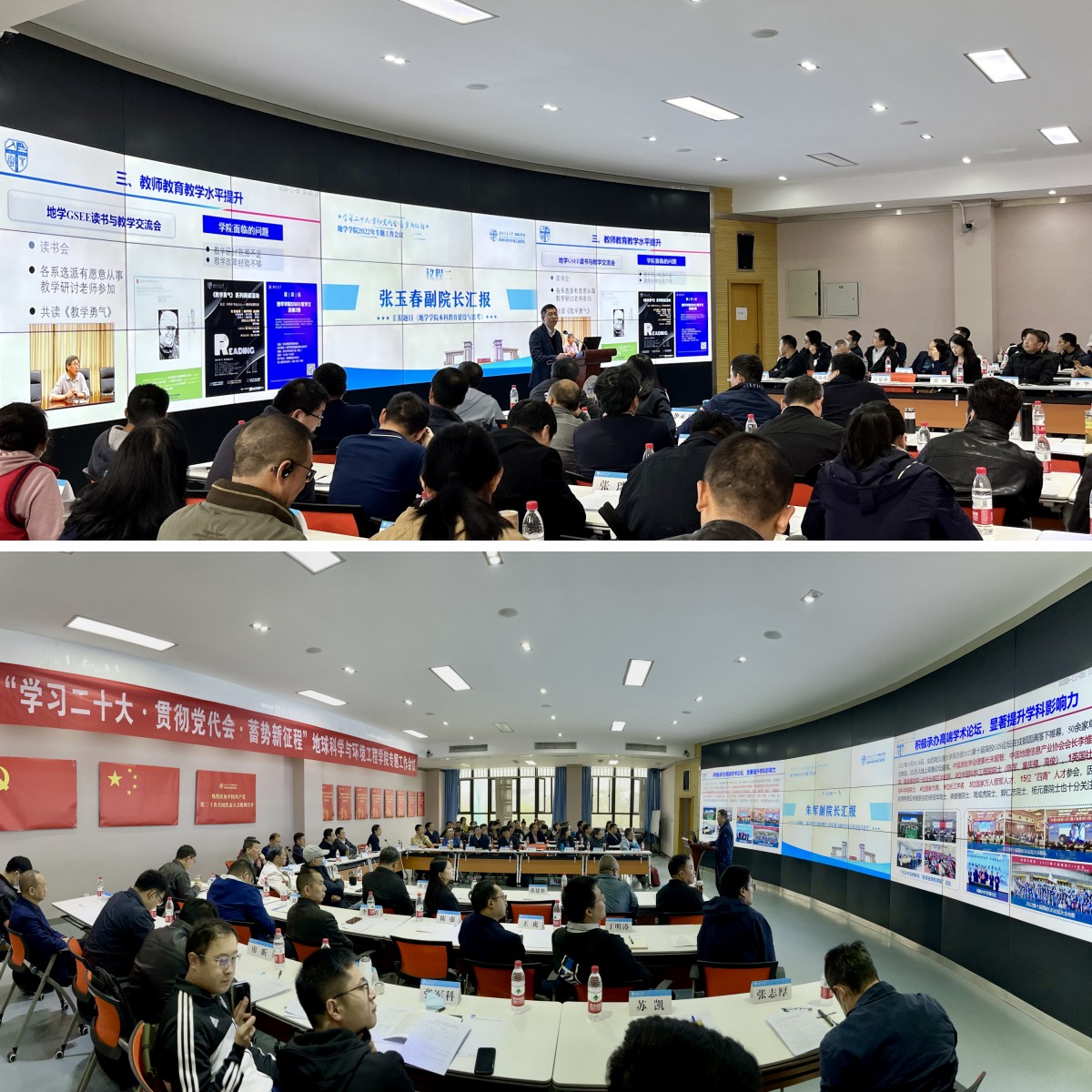 学习贯彻党的二十大、学校第十五次党代会精神的落实大会,也是学院共商要事再出发的发展大会。站在新一轮起点上,回首看,星星之火闪耀理想之光,地学人初心不改,筚路蓝缕,风雨兼程,照亮迈步前行的道路;抬眼望,漫漫征途走向复兴伟业,地学人信念如磐,群策群力,勇往直前,创造更加灿烂的辉煌。