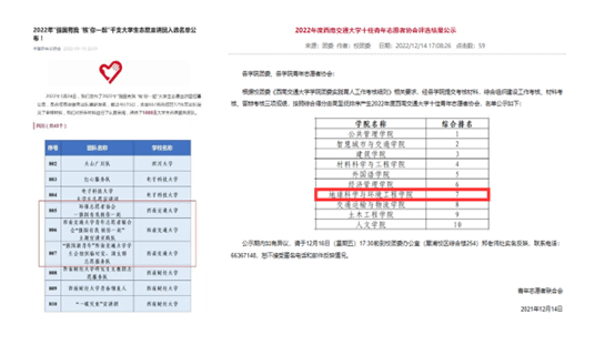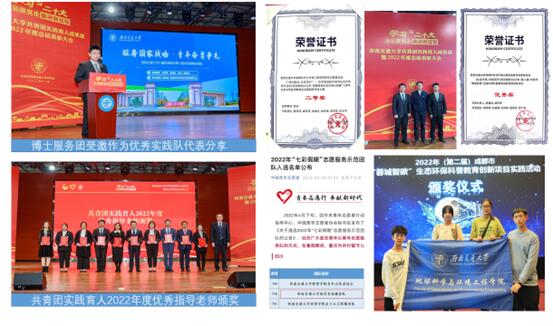 杨都强、王琼、文强老师获共青团实践育人2022年度优秀指导老师称号。学院指导的环保志愿者协会实践队伍从全国667所高校的1796支团队中脱颖而出入选“2022年‘强国有我·核你一起’千支大学生志愿宣讲团”。每日大赛