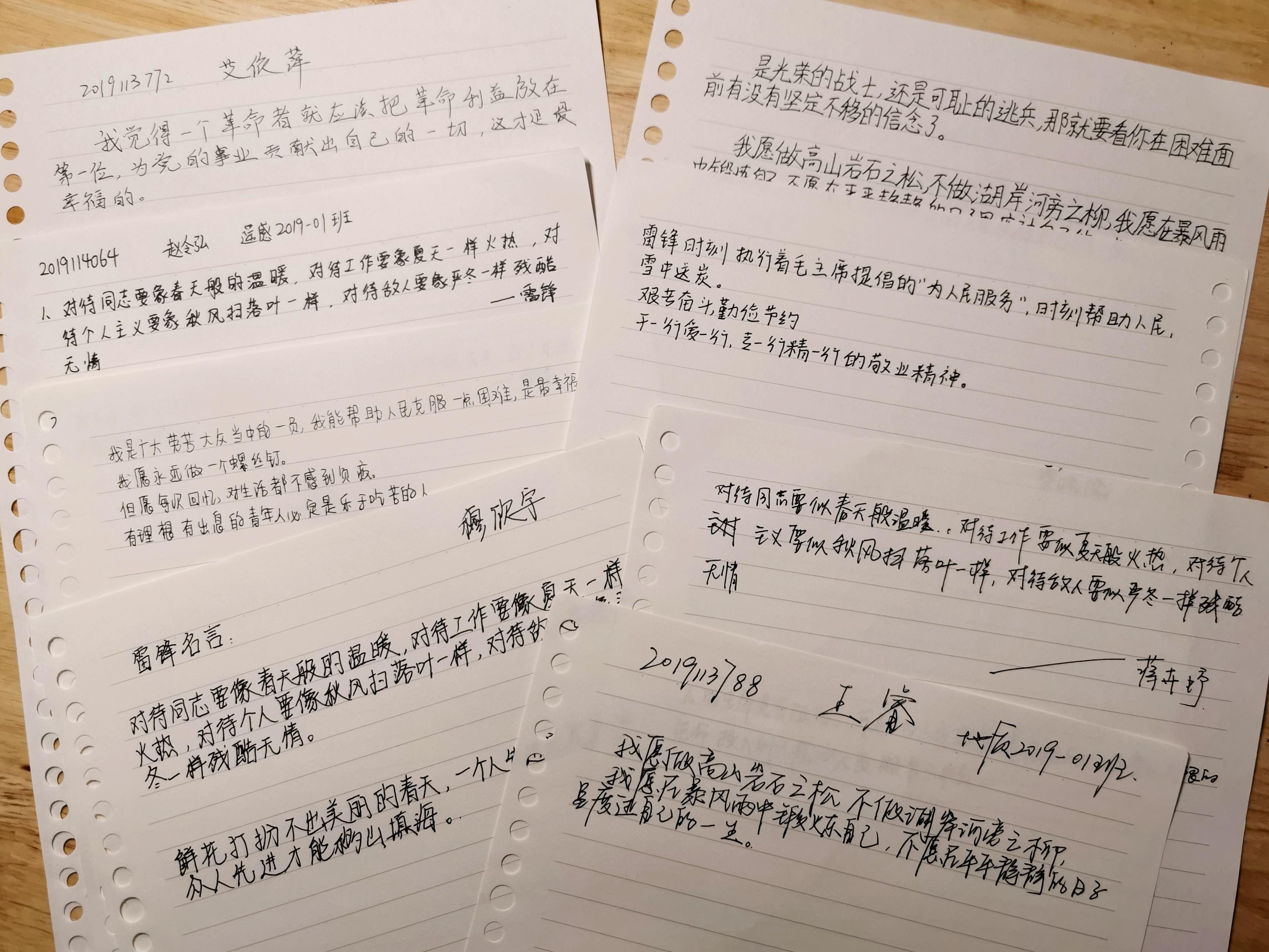 随后,在学生会干部的引导下,在各自习室工作的志愿者对雷锋同志生平事迹及相关纪实进行集体学习。雷锋同志因公牺牲时只有22岁,与同学们年纪相仿,他短暂却熠熠生辉的一生引起了同学们深刻的思考。围绕着“雷锋出差一千里,好事做了一火车”等雷锋故事,同学们就自己生活中该如何学习雷锋精神展开讨论,用纸笔写下了个人的感想。