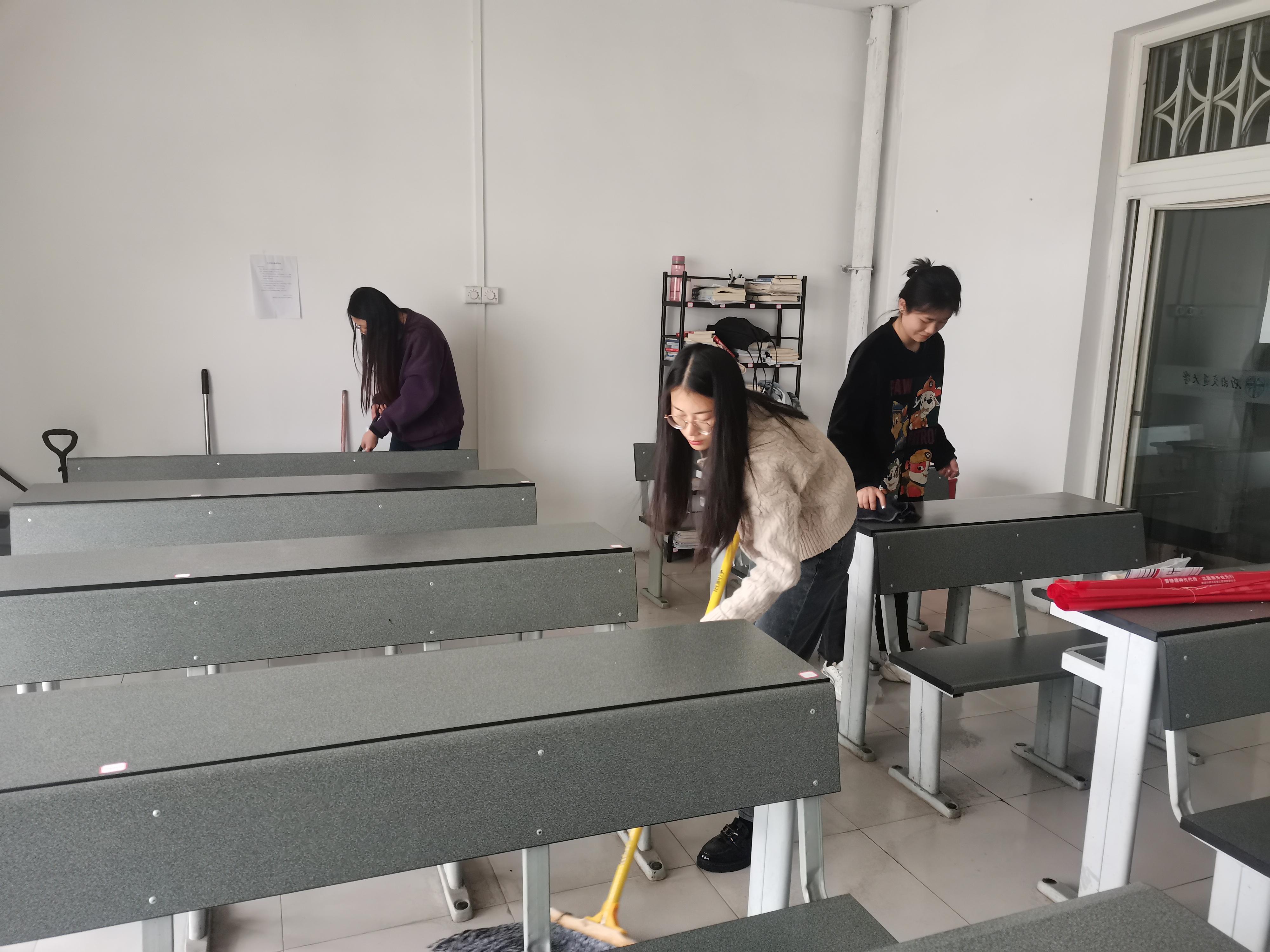 寒假期间自习室暂停开放,本次活动也是新学期第一次自习室清扫活动。志愿者熟悉了个人分工后,从自习室卫生情况入手,合作对自习室内地面、桌面、墙面的污渍进行清洁,检查了各电器的工作情况,重新张贴受损的志愿者工作说明,并共同组装了上学期末由学生会购置的新置物架,方便同学们临时收纳书籍杂物。志愿者们在为自习室增添亮色的同时,也收获了奉献互助、服务他人的快乐,以亲身实践领悟雷锋精神“为人民服务”的深刻内涵。