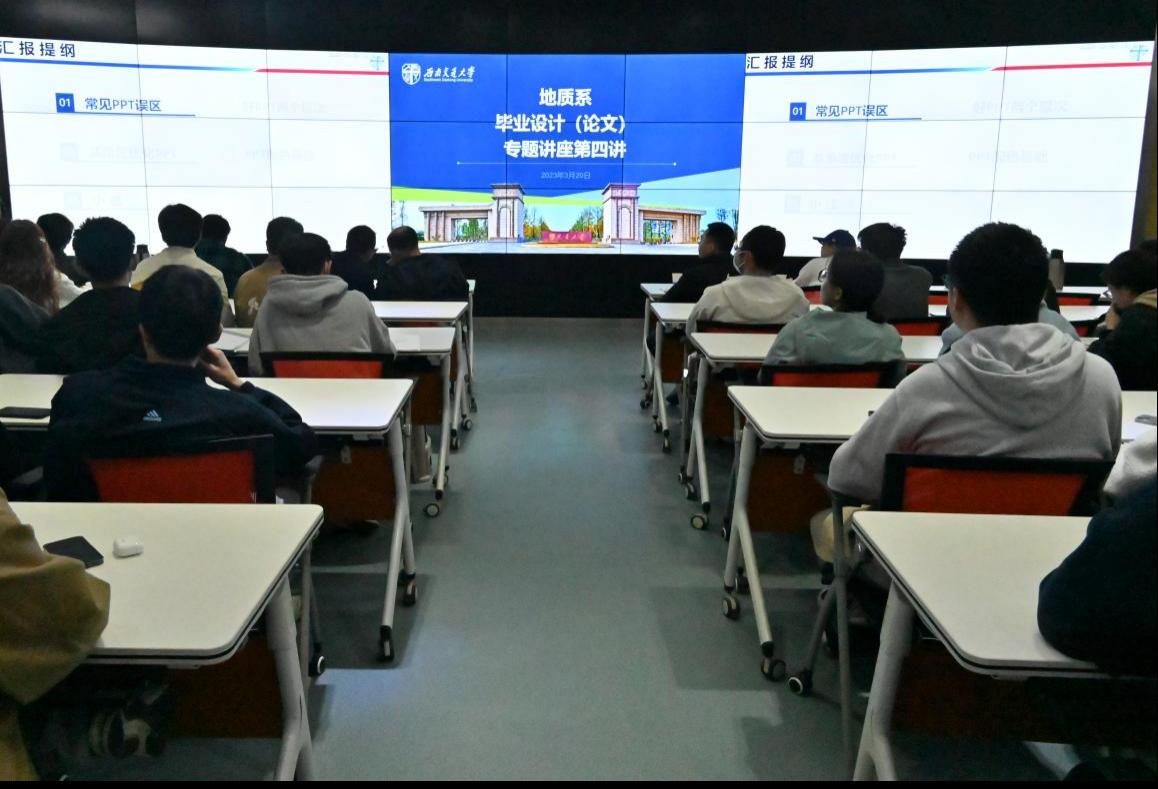 于X4243教室举办了地质系毕业设计(论文)专题讲座第四讲。讲座由地质系副主任张志厚老师主持,覃礼貌、孙辉、王虎、周平、杨情情老师参加讲座。