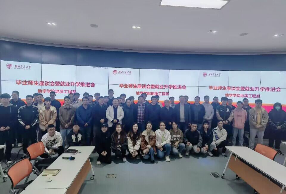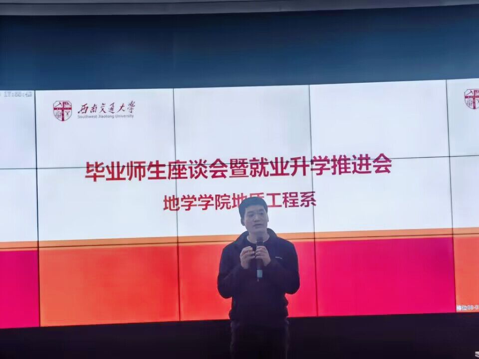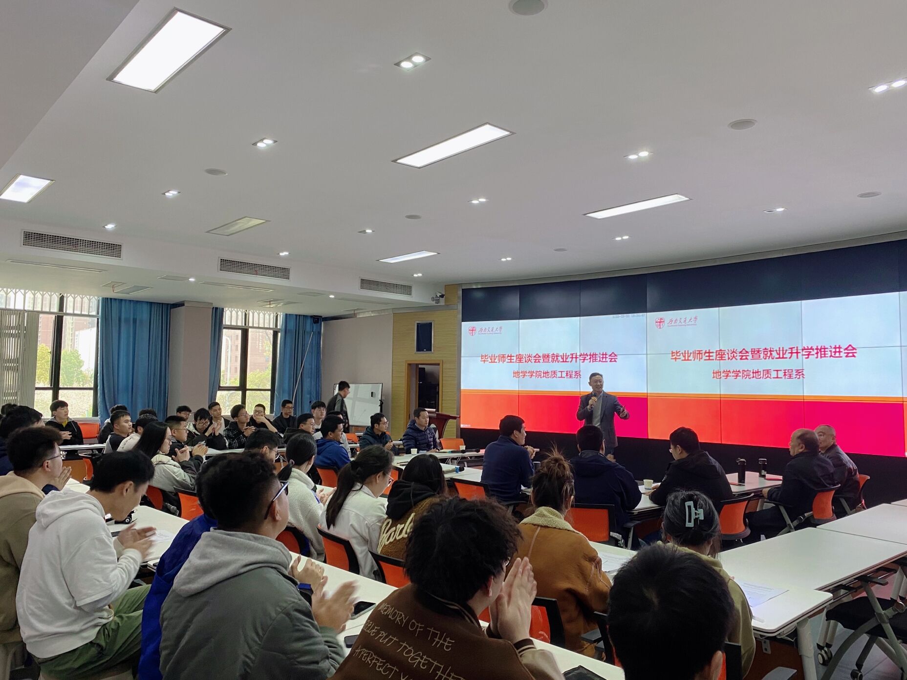 于3月23日,在多功能报告厅X4243组织地质工程系毕业师生座谈暨就业升学推进会,学院副院长赵晓彦、巫锡勇教授、陈强教授,以及地质系近10余位老师和毕业班辅导员老师参加会议并细心解答学生提问。推进会由学院党委副书记郑波主持。