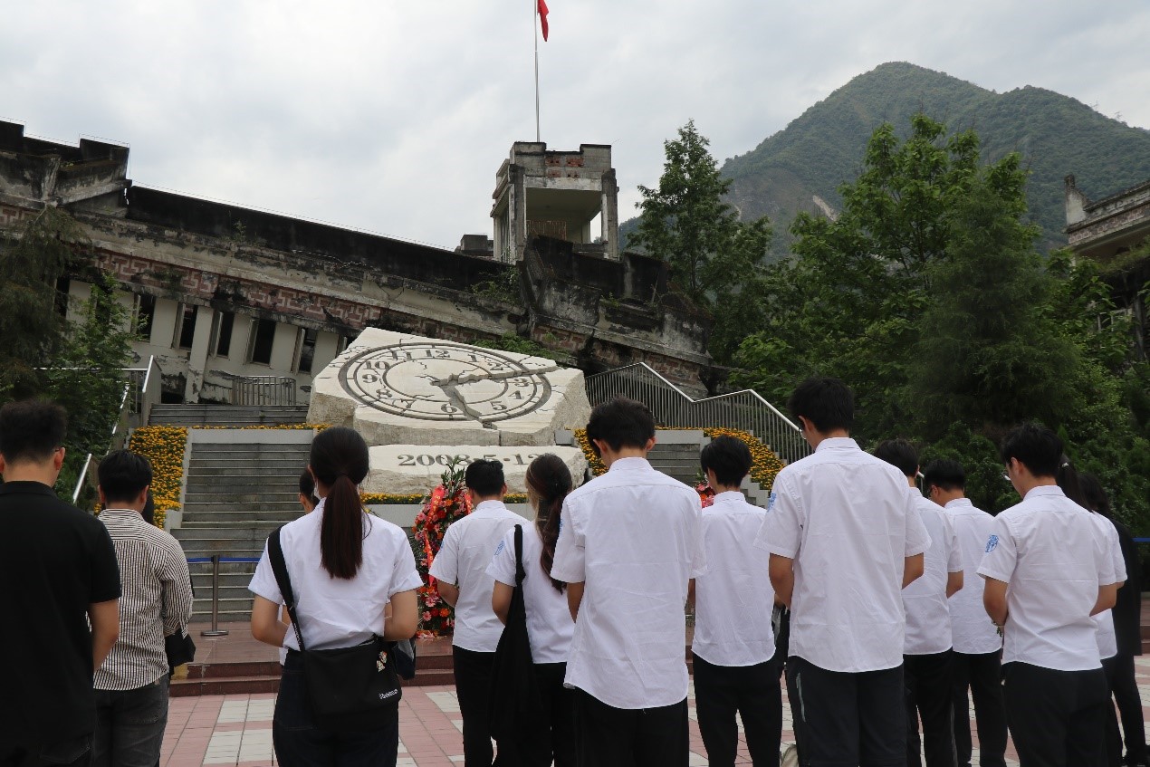 在映秀镇漩口中学地震遗址,讲解老师带领师生参观学校遗址,大片残垣断壁近在咫尺,地震之殇扑面而来,一个个真实的事例,保存下来的一砖一瓦、一楼一顶,都引发大家对生命的思考。