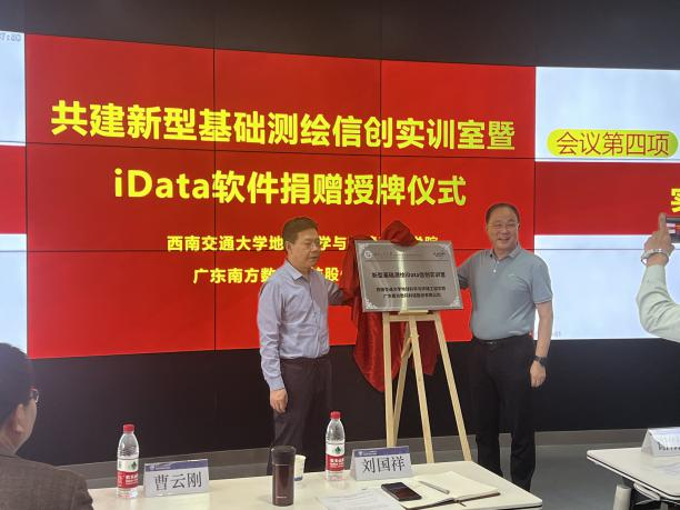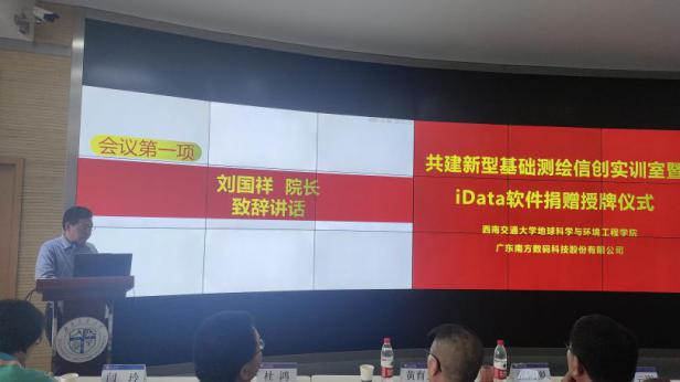 犀浦校区X4243会议室举行了新型基础测绘信创实训室暨iData软件捐赠授牌仪式及主题讲座。参加本次活动的领导和嘉宾有:南方数码集团总部谢刚生总经理、南方数码渠道发展部张巨林总监、南方数码成都分公司王建总经理、每日大赛