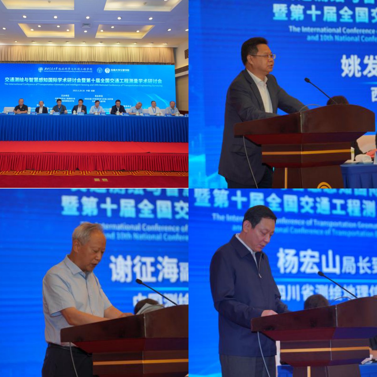 姚发明副校长、中国测绘学会工程测量分会副主任委员兼秘书长、重庆市勘测院谢征海副院长,四川省测绘地理信息局杨宏山局长先后发表了致词。他们一致希望此次会议能为交通智能化测绘与智慧感知理论创新与技术发展献计献策,为推动交通强国战略实施、交通测绘高质量发展贡献智慧。