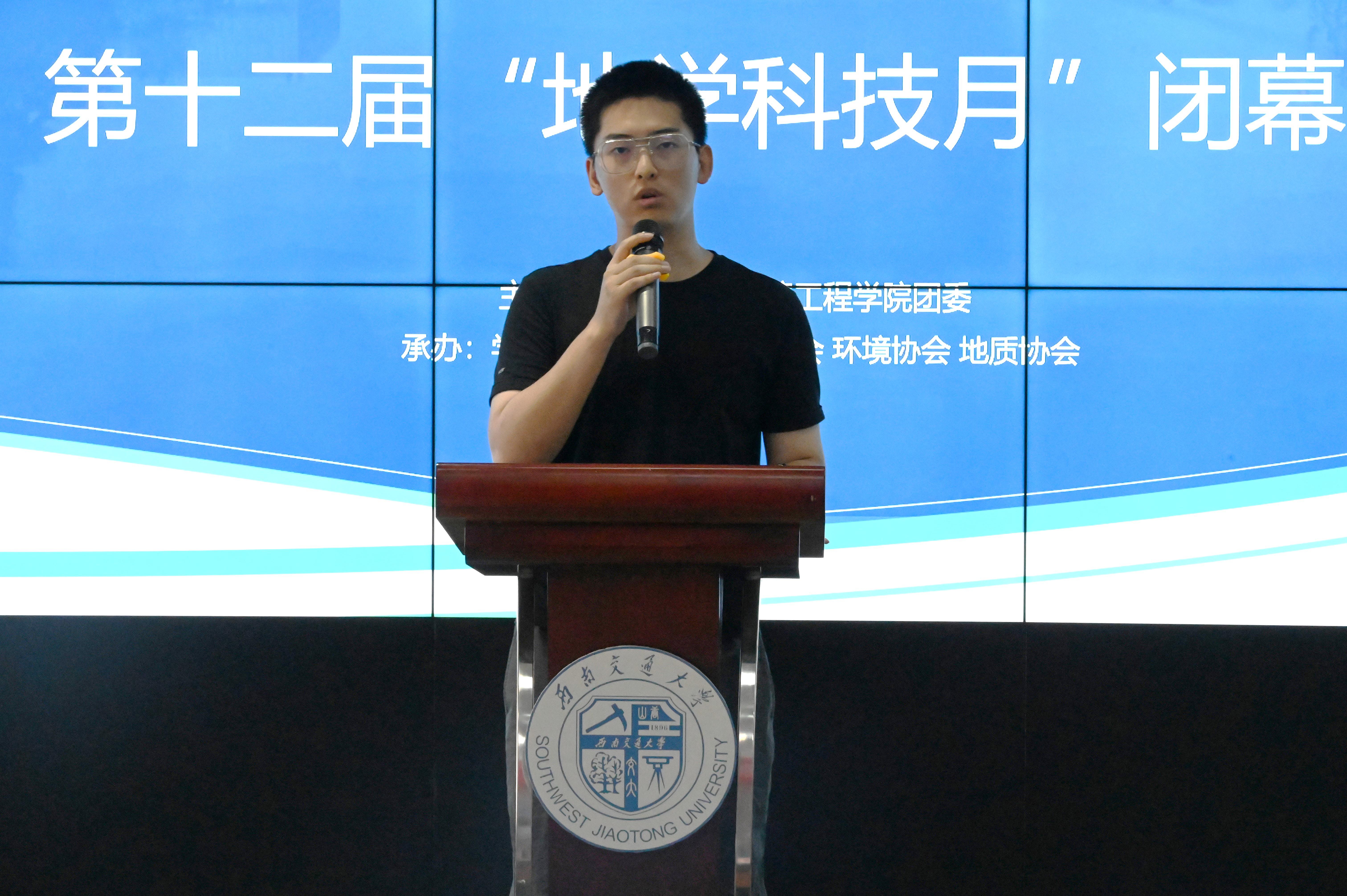 而后,地质技能大赛指导老师廖昕表示非常荣幸能够参加此次闭幕式,本次活动不仅为同学们提供展示能力的平台,也展现了地学学子的精神风貌,自己本科期间曾参加过土木科技月,每日大赛
