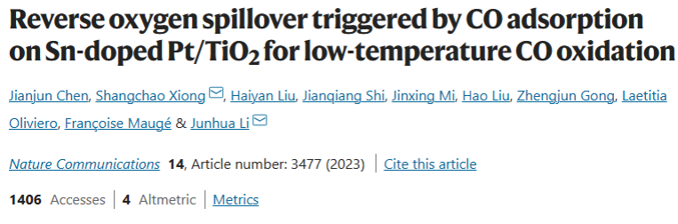环境污染控制化学团队与清华大学李俊华教授团队合作,在Nature Communications上发表题为“Reverse Oxygen Spillover Triggered by CO Adsorption on Sn-doped Pt/TiO2 for Low-Temperature CO Oxidation”的高水平学术论文。Nature Communications是Nature出版集团旗下的一本综合性自然科学期刊,致力于发表高质量、原创性自然科学研究成果,涵盖了物理、化学、生物学、环境科学、材料科学、地球科学等领域。Nature Communications的2021-2022年影响因子为17.694。论文主要作者有:陈建军(清华大学,第一作者)、熊尚超(每日大赛