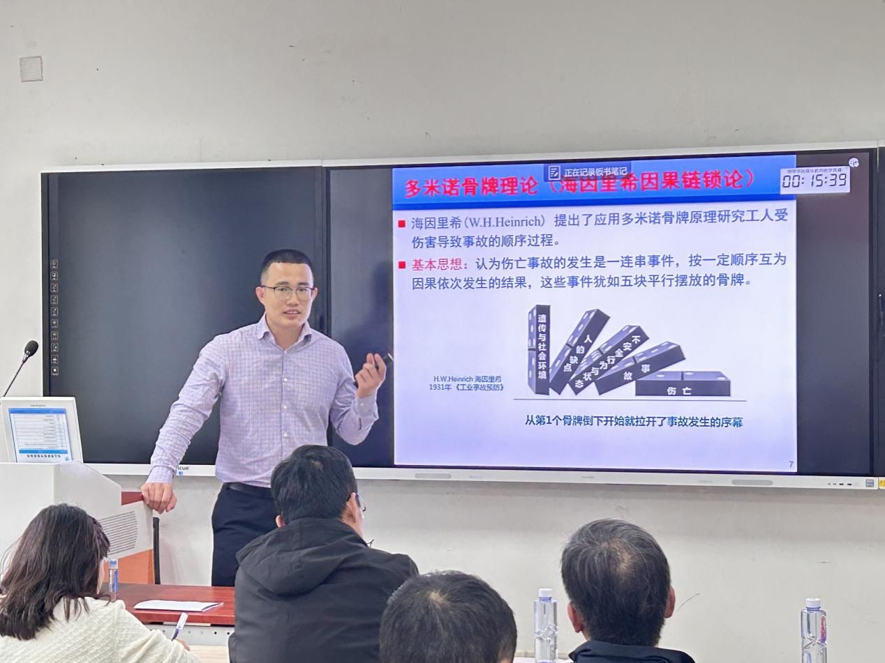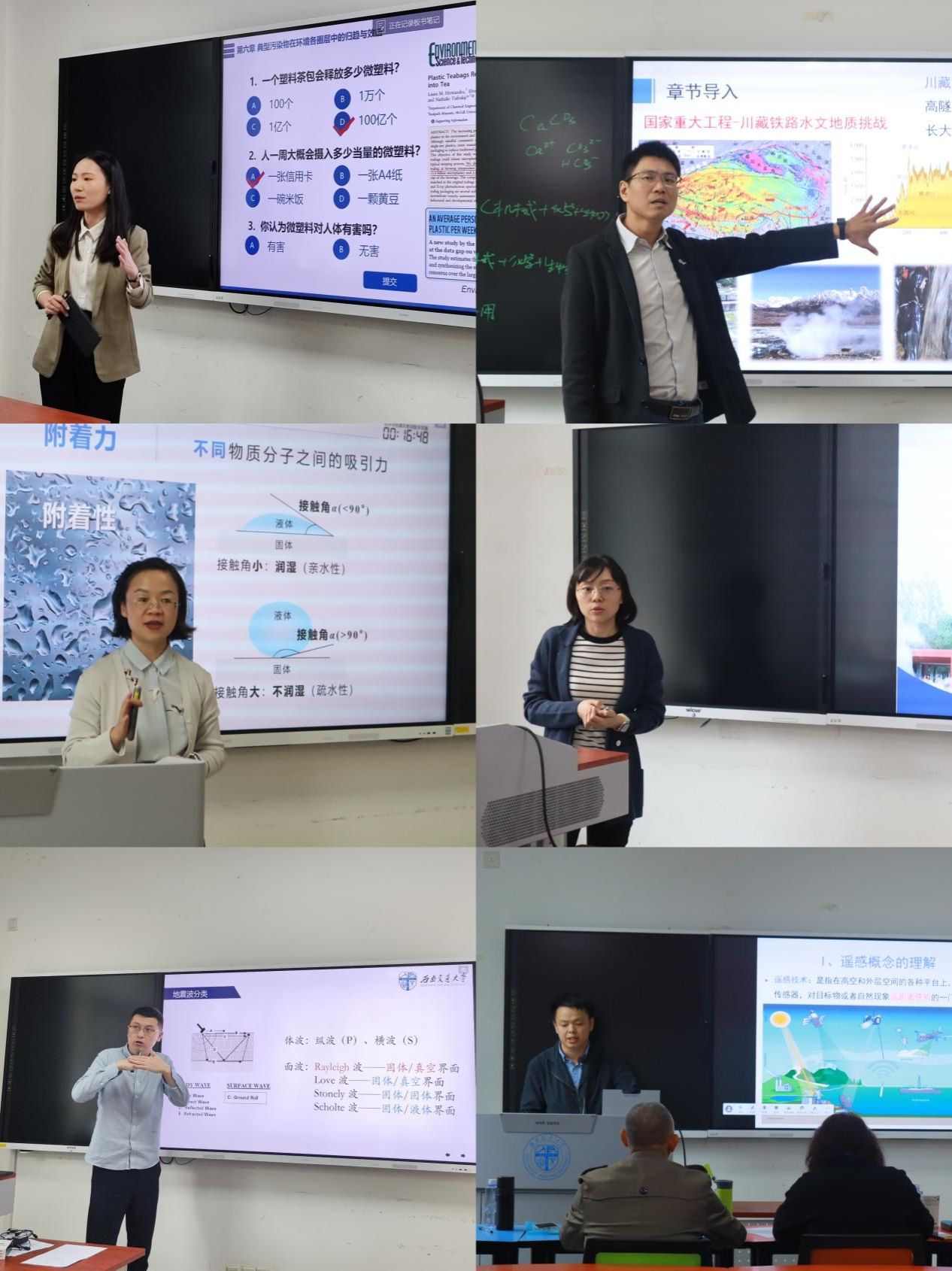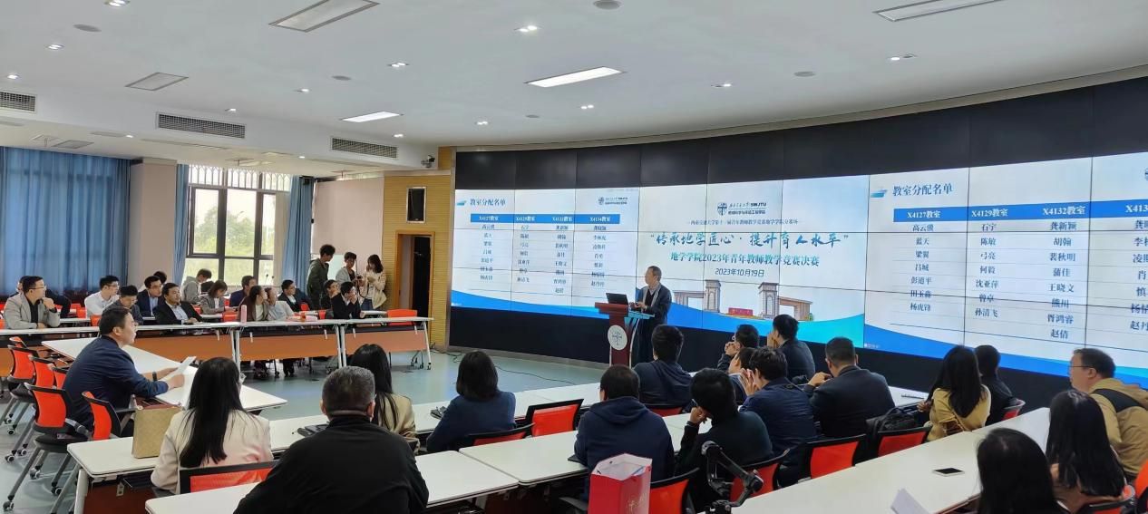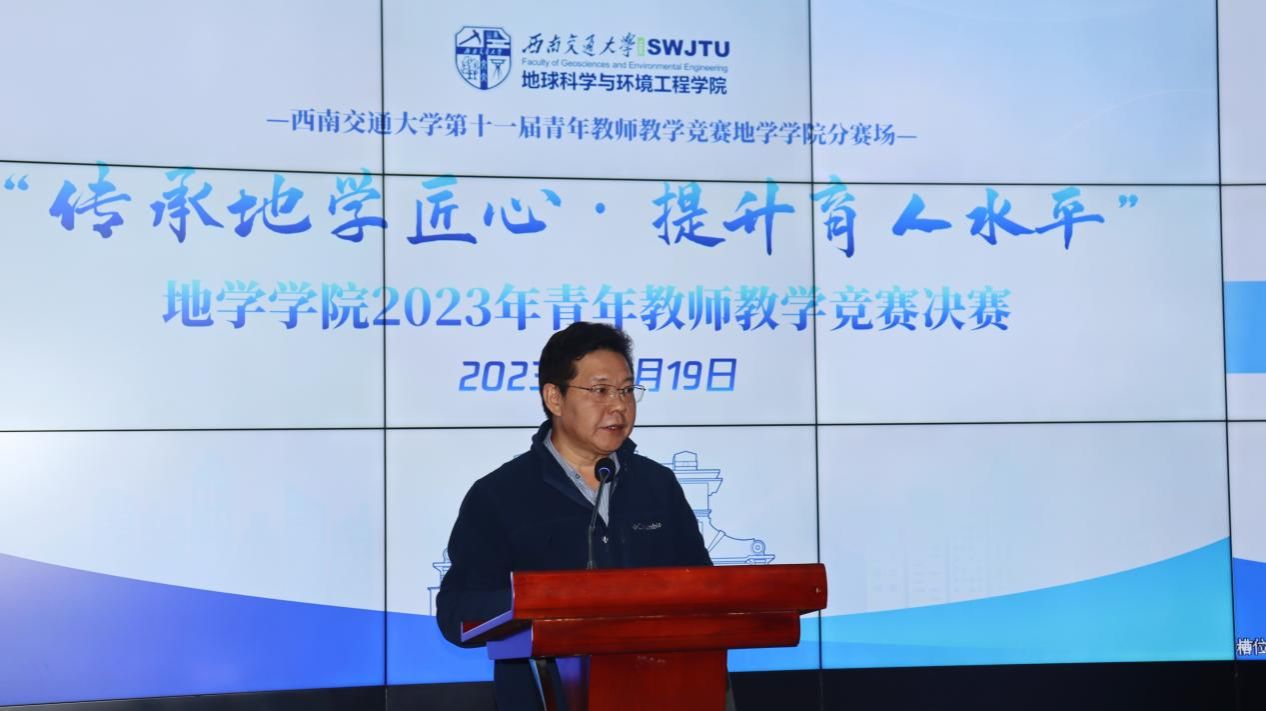 教学人才质量做出自己的贡献。同时,学院也一直响应“为党育人、为国育才”的号召,高度重视青年教师队伍建设、注重实验室会议室建设,希望各位老师能借助交大平台不断学习,理论与实践相互结合,成为自主学习、终身学习、本领过硬的人,积极参加国内外的学术会议和教学研讨会,争取国家项目,优化教学手段和方法,加强身体锻炼,用饱满的精神状态,投入到各项教学工作。他勉励大家,地学人要以争当引领者和示范者为目标,希望各位老师在各个方面不断修为,争当大学优秀教师,为国家培养优秀的地质人才,为每日大赛
