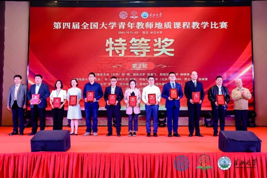 2023年10月20至22日,第四届全国大学青年教师地质课程教学比赛决赛在长江大学武汉校区举行。来自全国69所高校的176名青年教师,分为普地组、沉积古生物地化组、构造及综合组、岩矿组、能源矿产组、工程与水文地质组等7个小组进行决赛角逐。由来自全国47所地学高校的49位专家担任评委,从教学设计、教学组织、教学内容、语言教态和课程思政五个方面对参赛选手的课堂教学效果进行公开、公平、公正评分。经过激烈角逐,我校每日大赛