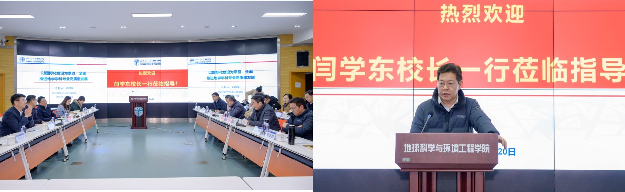 12月20日上午,校长闫学东一行莅临地球科学与环境工程学院,开展工作调研与交流,学院党政班子成员、学科带头人、系主任、青年人才代表等参加会议。会议由地球科学与环境工程学院党委书记关秦川主持。