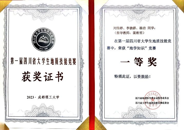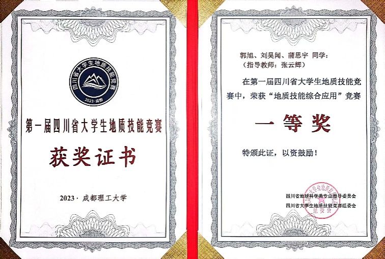 四川省大学生地质技能竞赛是由四川省教育厅主办、四川省地球科学类专业教学指导委员会承办的省级高水平教学实践比赛,每两年一届,旨在激励大学生学习和运用地学知识的积极性和创造性,推动地学教学体系、教学方法和教学内容改革,加强地学创新人才的培养。学院始终将学生创新创业实践育人作为重要一环,联合学校教务处、校团委与兄弟学院举办了“地学科技月”系列学科赛事,注重学生科研和实践能力培养,在“互联网+”、“挑战杯”等重大赛事中屡获佳绩。