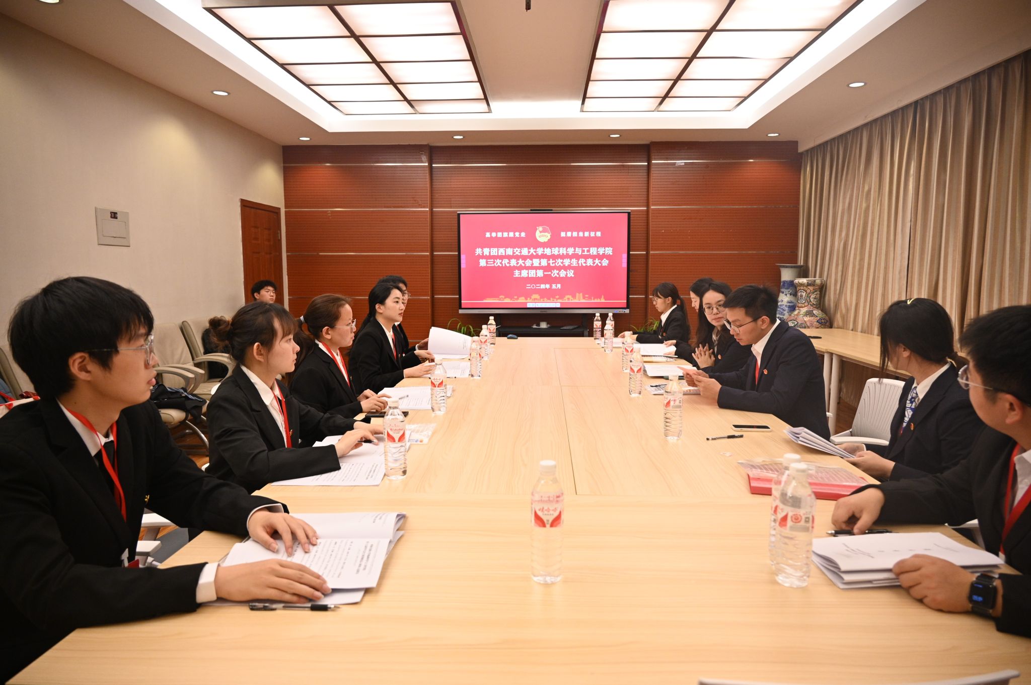 第三次代表大会暨第七次学生代表大会预备会议,听取大会筹备工作汇报,听取并审议了团费收缴、使用和管理情况的报告,审议通过了大会代表资格审查报告、大会议程、选举办法(草案),主席团成员名单及学生代表大会秘书长、副秘书长建议名单,各委员会委员候选人预备人选名单、学生会主席团候选人预备人选名单,大会总监票人、监票人、总计票人、计票人建议名单,宣布会议纪律要求。大会主席团通过了各候选人名单。
