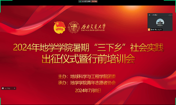 暑期“三下乡”社会实践活动出征仪式暨行前培训会。切实发挥共青团作为广大青年在实践中学习中国特色社会主义和共产主义的学校作用,教育引导全体交大青年上好与现实相结合的“大思政课”,在社会课堂中“受教育、长才干、作贡献”,坚定信念听党话、跟党走,努力成长为担当民族复兴大任的时代新人。