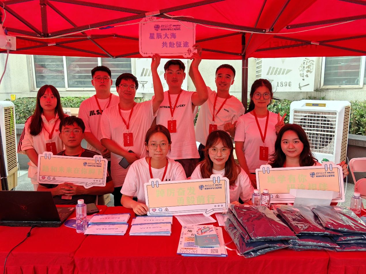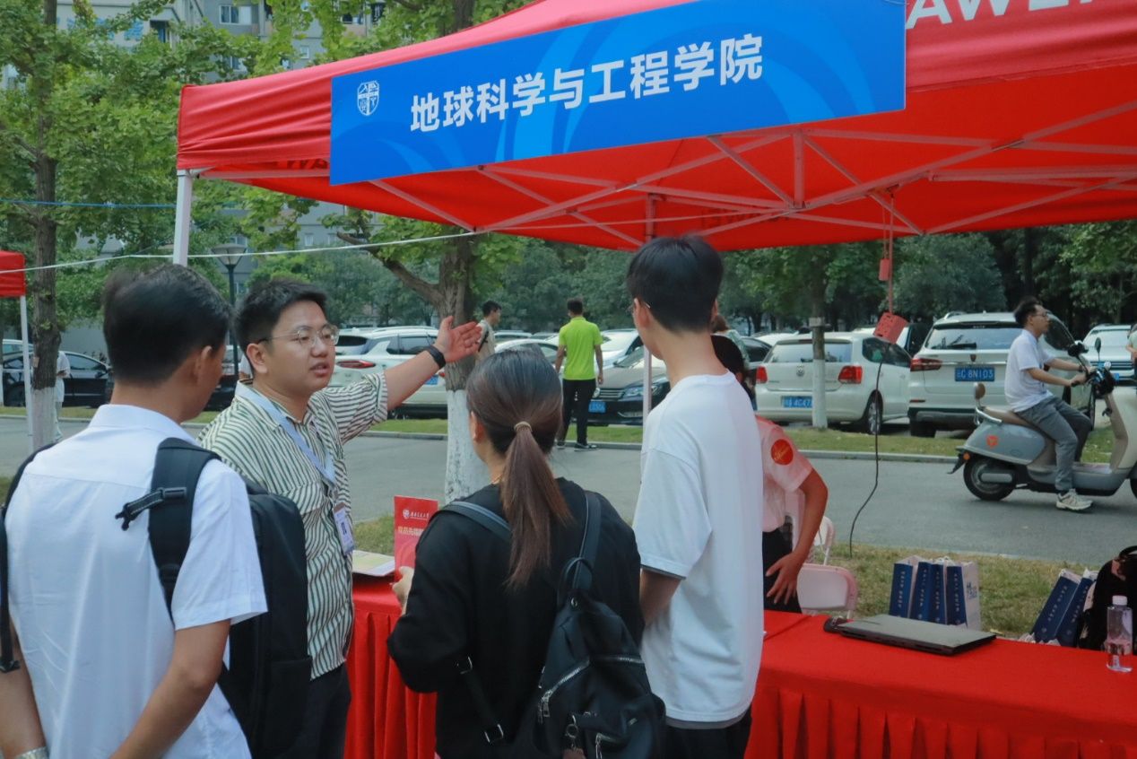 学院党委书记关秦川、党委副书记郑波、团委书记杨都强等一行来到现场看望慰问迎新工作人员,并与前来报到的学生与家长亲切交流。