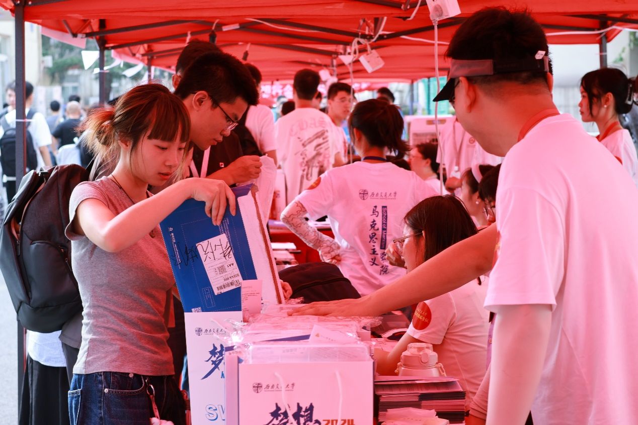 迎新工作迎来高潮,前来报到的新生接踵而至。迎新点前排起了长队,流动岗志愿者们辗转于迎新点和宿舍间,高效有序地推进学院新生入学报到工作。