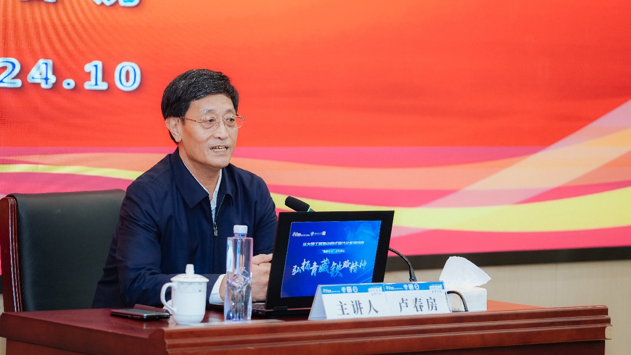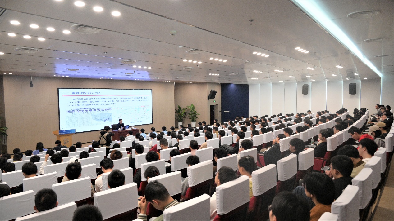作为曾经的青藏铁路公司总经理、党委书记、青藏铁路建设总指挥部指挥长,卢春房向广大师生分享了他肩负重任,领军出征,奋勇攻坚,迎难而上,将“挑战极限、勇创一流”的青藏铁路精神写在雪域高原上的故事。苍茫雪域,巍峨昆仑,面对高寒缺氧、多年冻土、生态脆弱三大世界性工程难题,卢春房院士与他的战友们“横下一条心,干好青藏线”,“青藏无小事,事事讲政治”,大事小事一起抓,从持续冻土攻坚、健全卫生保障、创新环保技术、优化管理思路等多个方面着手,以惊人的毅力和勇气,与恶劣环境斗争、与技术瓶颈较量,在“生命禁区”艰苦奋战、顽强拼搏,实现了青藏铁路三大难题攻关取得可喜成绩,冻土技术、高原环保技术、高原病防治技术均达到世界先进水平,在“世界屋脊”建成了一条海拔最高、线路最长的运输大通道,谱写了我国乃至世界铁路建设史上新的篇章。