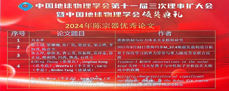 “陈宗器地球物理优秀论文奖”自2012年开始评选,每年表彰在我国地球物理最权威的《地球物理学报》前四年刊登的学术论文中,筛选出年度“被引频次”数量高的优秀论文,每届年会评选优秀论文奖不超过5篇。