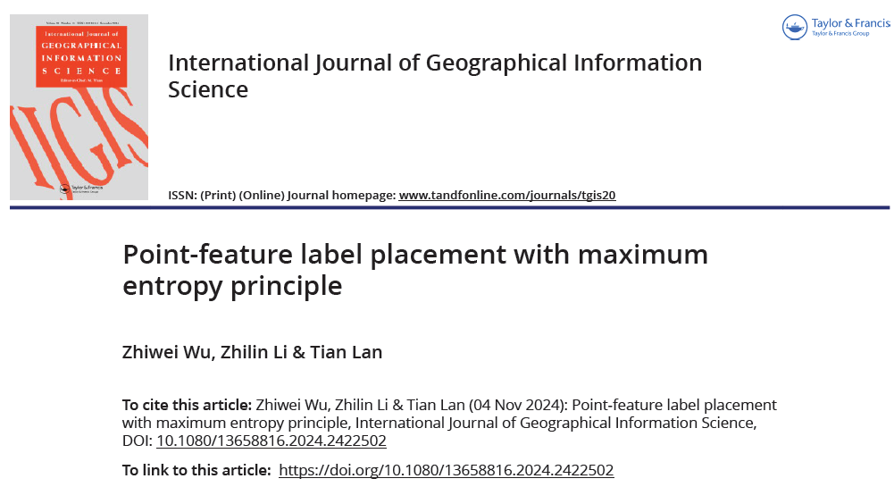 论文引用格式:Wu, Z., Li, Z., & Lan, T. (2024). Point-feature label placement with maximum entropy principle. International Journal of Geographical Information Science, 1–21. //doi.org/10.1080/13658816.2024.2422502