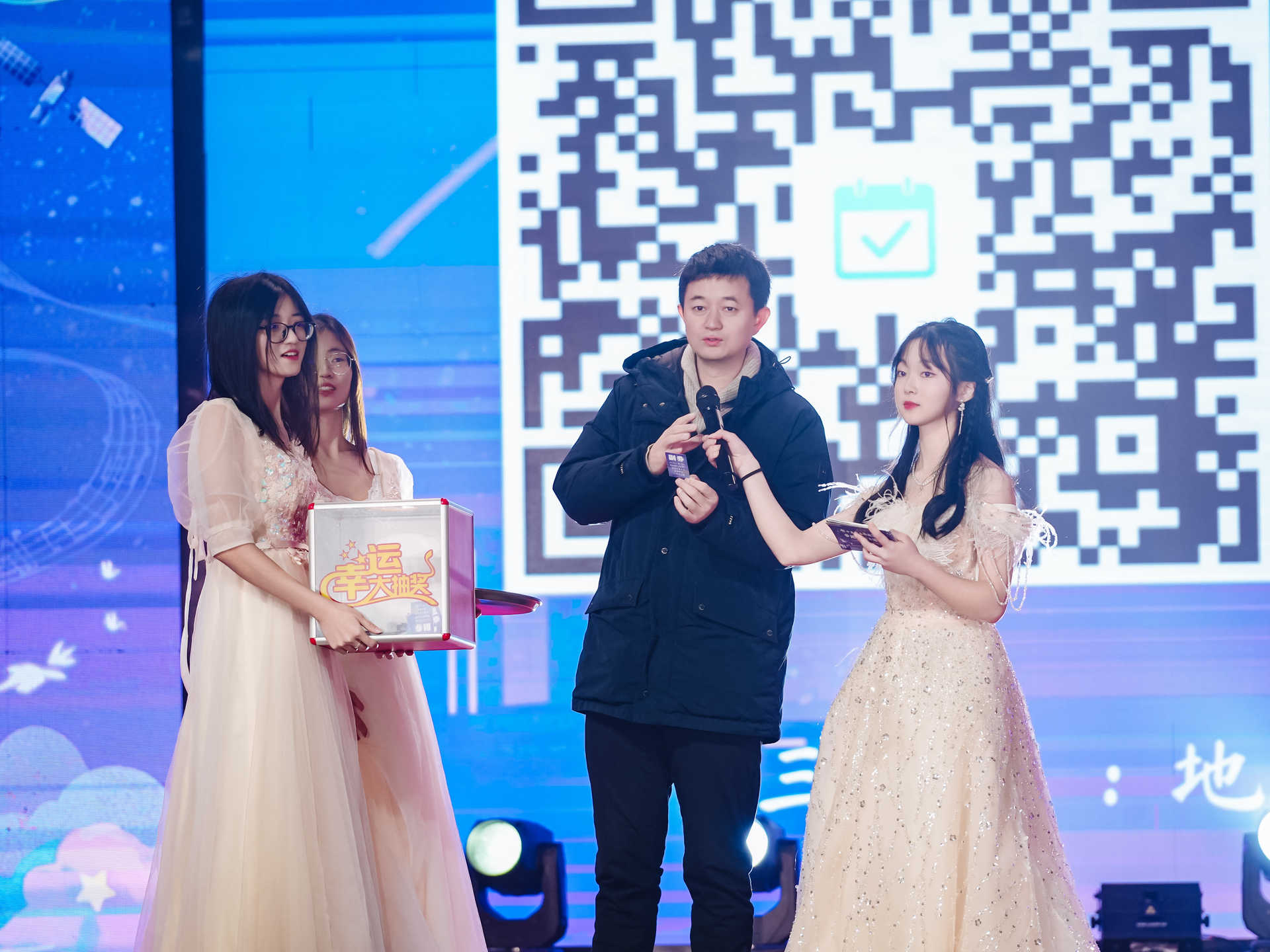 研究生优质生源奖,鼓励更多的优秀学子在交大继续深造、不断奋进。颁奖环节之后,便迎来了令人激动的第一次抽奖,朱军相继抽取三等奖幸运观众,推动现场气氛走向火热。