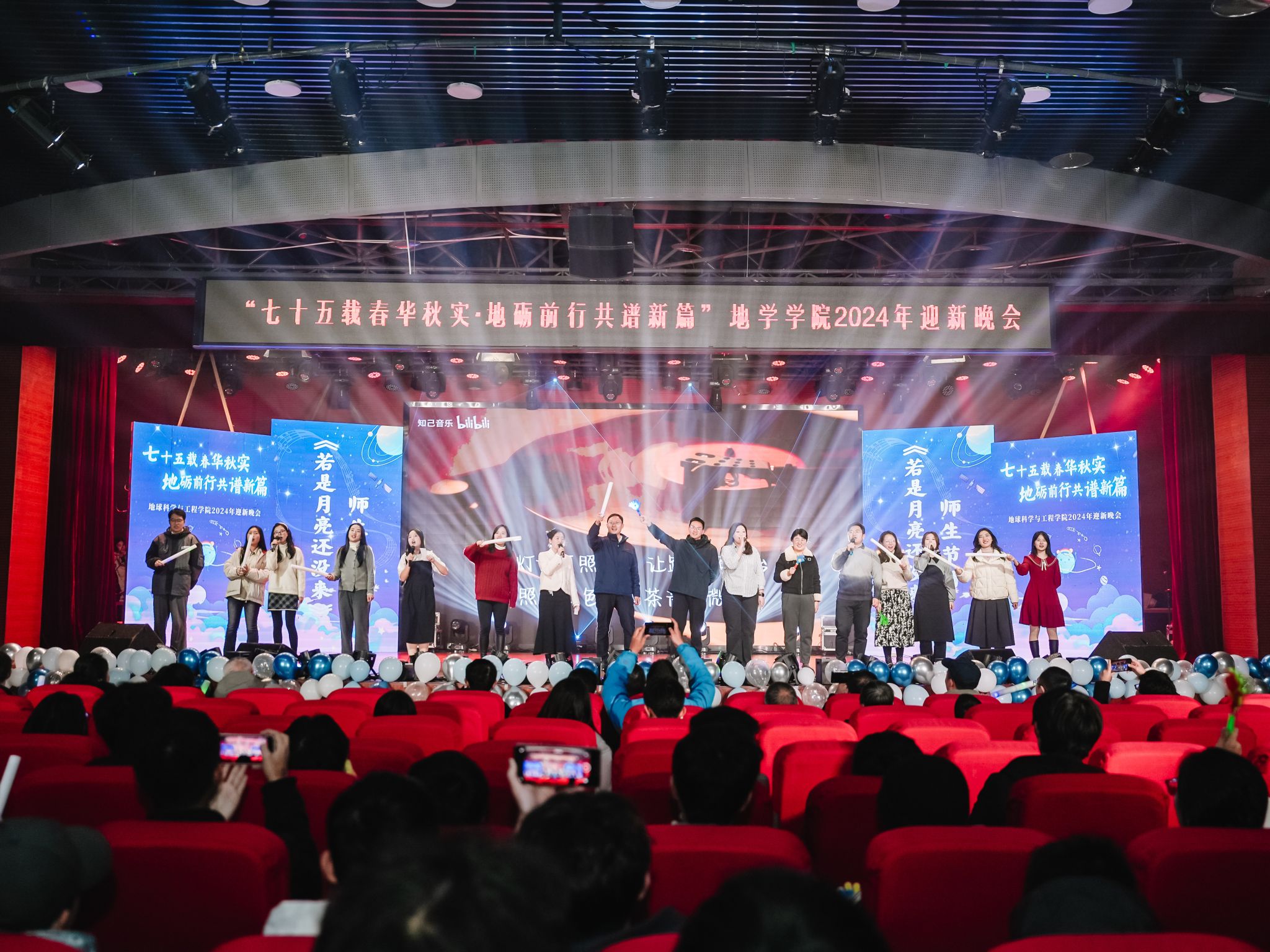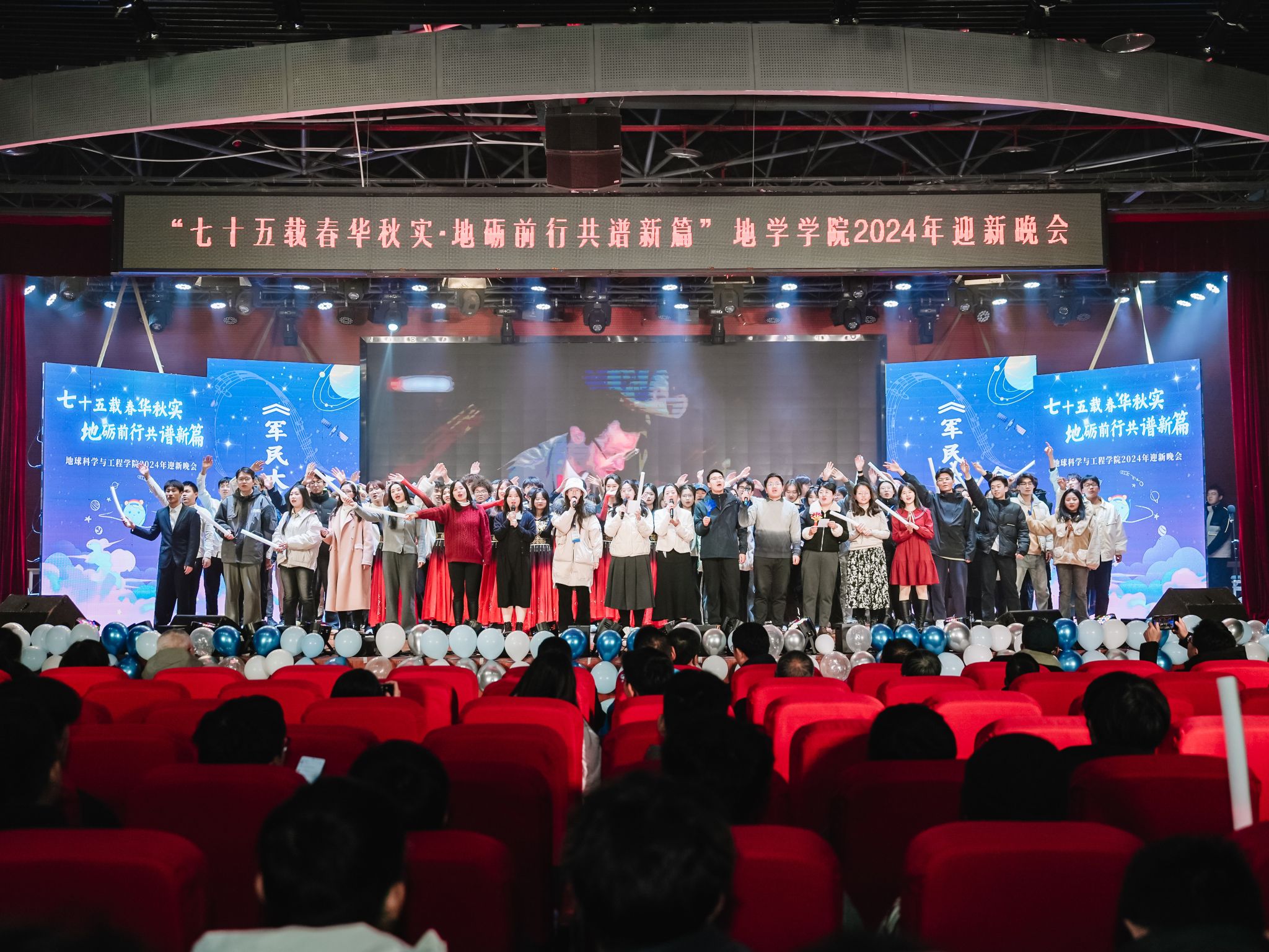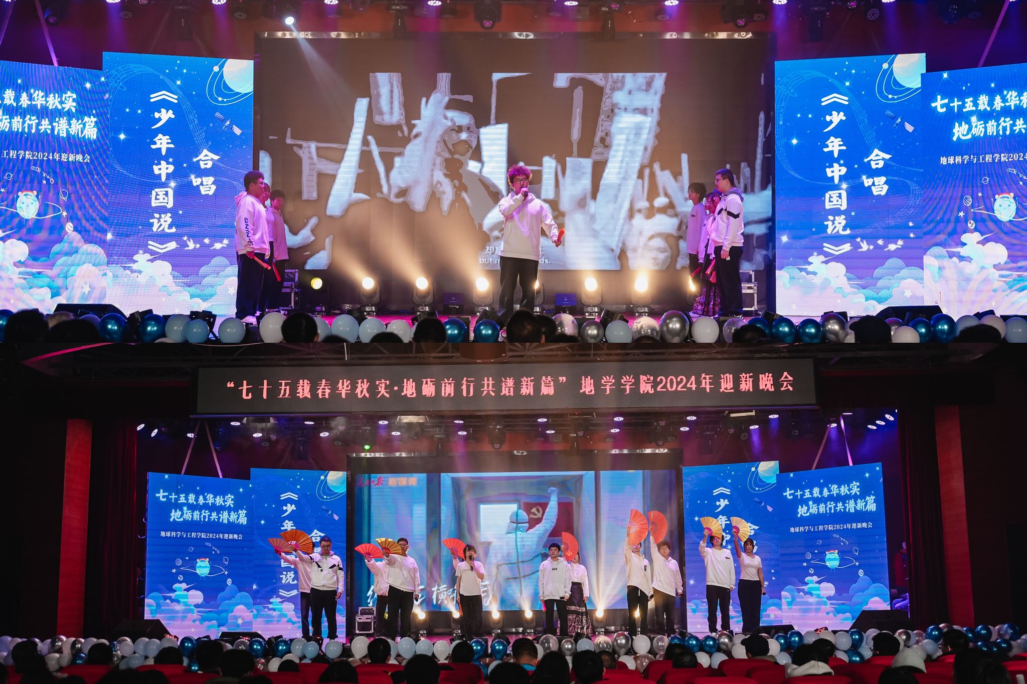 由地学青协、班联以及测绘2班带来的合唱《夜空中最亮的星》宛如璀璨星群在夜幕下共鸣,交织着希望与力量的歌声里有对梦想的执着与冲破黑暗的勇毅,动人心弦。