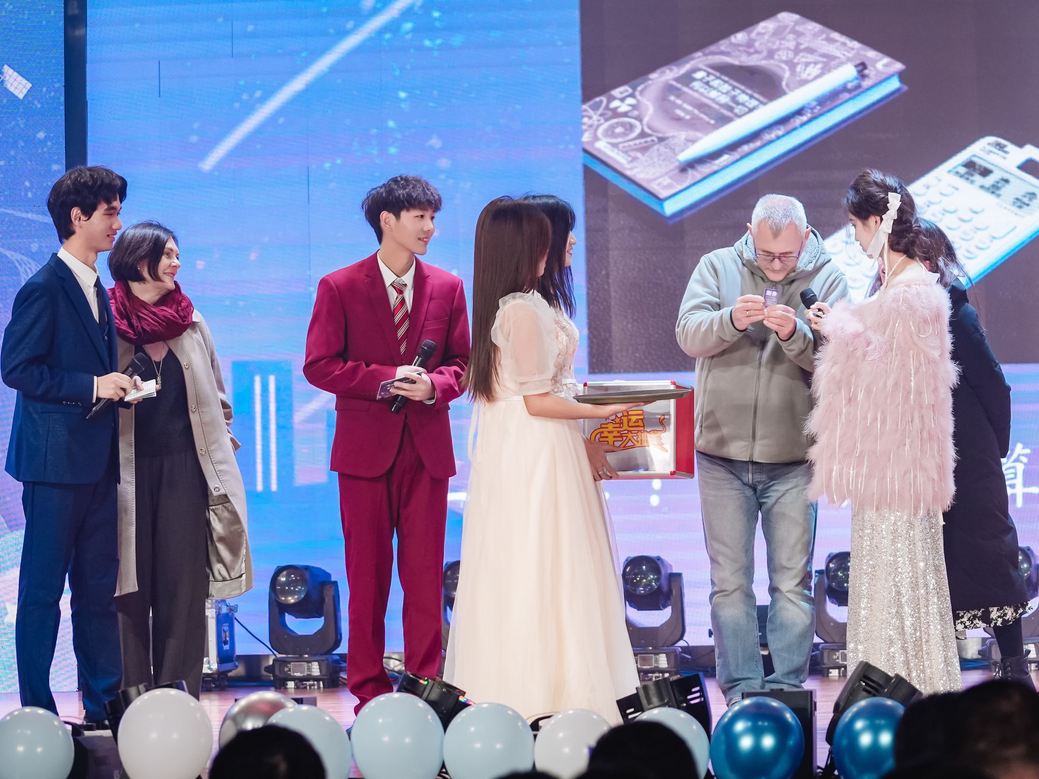 在第二轮激动人心的抽奖环节,外籍教师代表Inna Safonova、Sergei Krivonogov与梁爽老师抽取二等奖幸运观众,将现场气氛推向又一高潮。