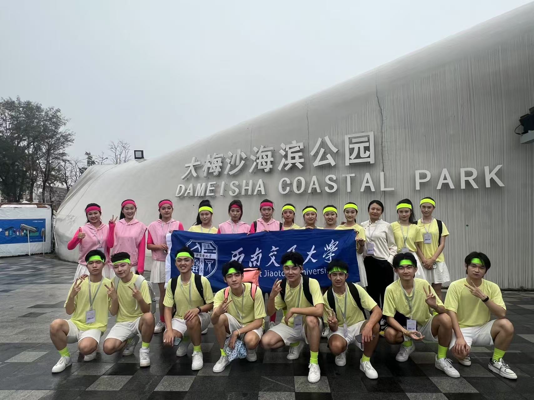 本次特别节目首次突破传统舞台形式,将录制现场搬至深圳海湾与沙滩,以天地为幕、科技为媒,打造了一场青春与时代共振的视听盛宴。从四川到深圳,从课堂到舞台,面对高强度、快节奏的挑战,交大学子迎难而上,白天在烈日与海风中反复打磨动作,深夜在酒店连廊、休息区争分夺秒复习课业;暴雨中湿透衣衫仍坚持排练、沙砾磨破双脚亦未言放弃。青年学子们以“能唱能跳、能文能武”的综合素养顺利参演晚会中《迎风起跑》《寄往未来的信》等四个节目,不仅点亮了荧屏,更以“青春须早为”的锐气、“敢为天下先”的胆识,充分展现了新时代交大青年与祖国同频、与时代共振的精神风貌。