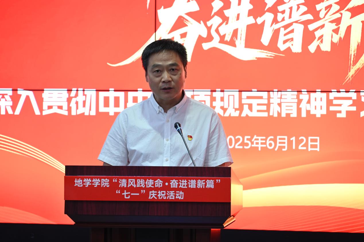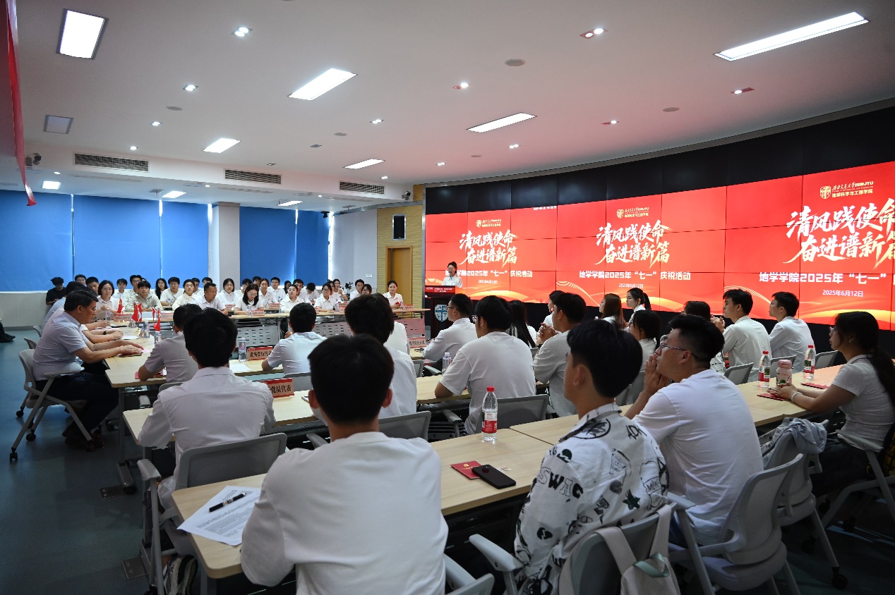 于X4243会议室隆重举行“清风践使命·奋进谱新篇”“七一”庆祝活动,共同庆祝党的生日,表彰先进,激励全院师生党员牢记使命、砥砺前行。学院党委书记关秦川、党委副书记兼纪委书记郑波、党委委员胡卸文出席大会,全院师生党员代表参加活动。大会由学院党委组织员李晓宇主持。