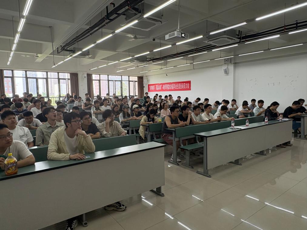 党委副书记郑波、中级生涯导师王琼以及就业专项负责人孙惠敏和全体2026届研究生参会。本次大会由2023级研究生辅导员韩沁儒主持。